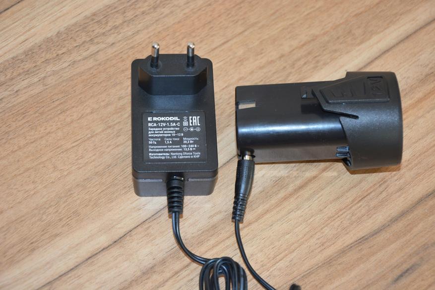 Даже если работы с крепежом предстоит много, то не обязательно прекращать работу, когда аккумулятор разрядится. В комплекте их два. Разрядился один — подключаем второй, а первый на зарядку. Причем зарядка тут быстрая, в ноль разряженный аккумулятор заряжается всего за час. Как могу судить по другим аккумуляторным инструментам Rokodil — аккумуляторы у данного производителя живучие и замены требуют не скоро.