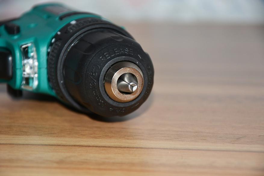 Бесключевой быстрозажимной патрон дает возможность быстро сменить сверло или биту, и немало тому способствует блокировка вала. Установить сверло можно диаметром до 10 мм. Между патроном и муфтой есть небольшой зазор и это не оплошность — муфта не прикрывает патрон и не мешает при затяжке. Кнопка выбора направления вращения вала установлена удачно и переключается одним пальцем с четким позиционированием. Среднее положение также есть, что исключает случайный пуск двигателя. Вентиляционные решетки назвать большими нельзя, но даже при не самых легких задачах для шуруповерта, воздух из них выходит едва теплый, двигатель греется слабо.