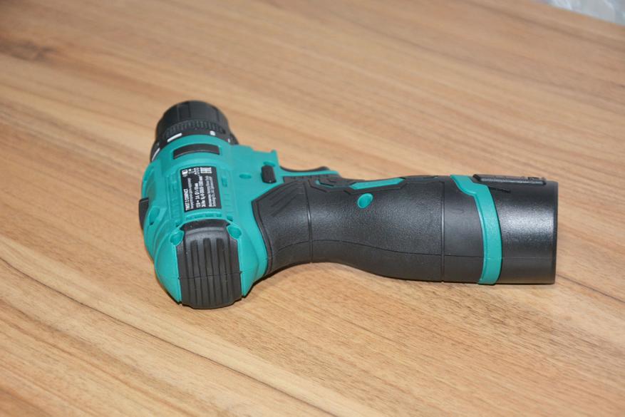 Тыльная сторона корпуса имеет резиновую вставку, и удары или падение с небольшой высоты шуруповерту не страшны.