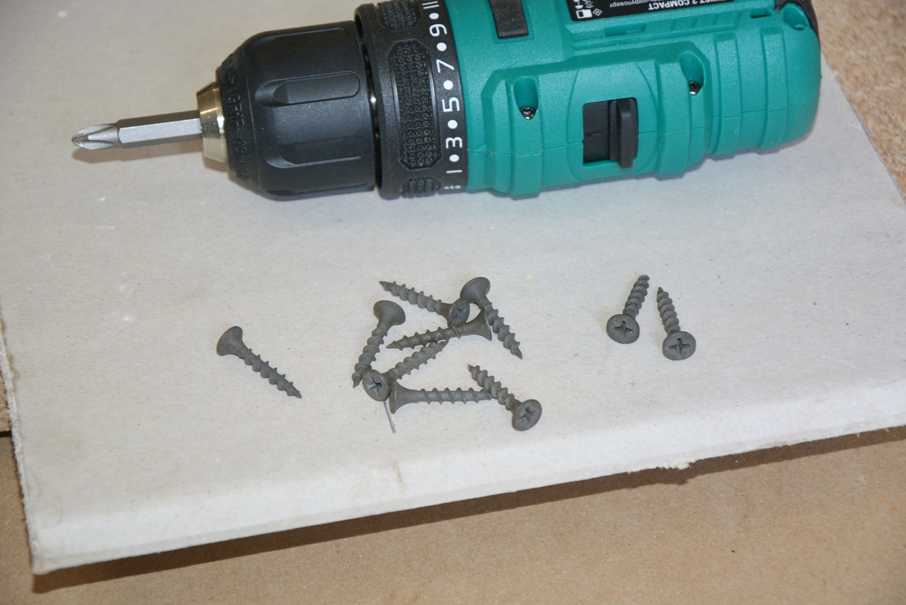 Ну, и чтобы выяснить, когда же аккумулятор-то разрядится, воспользовался саморезами длиной 35 мм. Вкрутить удалось все, что были, а именно 110 штук, а выкрутить 98. Получается где-то 200 штук на уже не полностью заряженном аккумуляторе. Нормальный результат для домашнего шуруповерта с питанием 12 Вольт и нет оснований не верить, что на полной зарядке хватит на 300-400 саморезов. К тому же, есть второй аккумулятор.