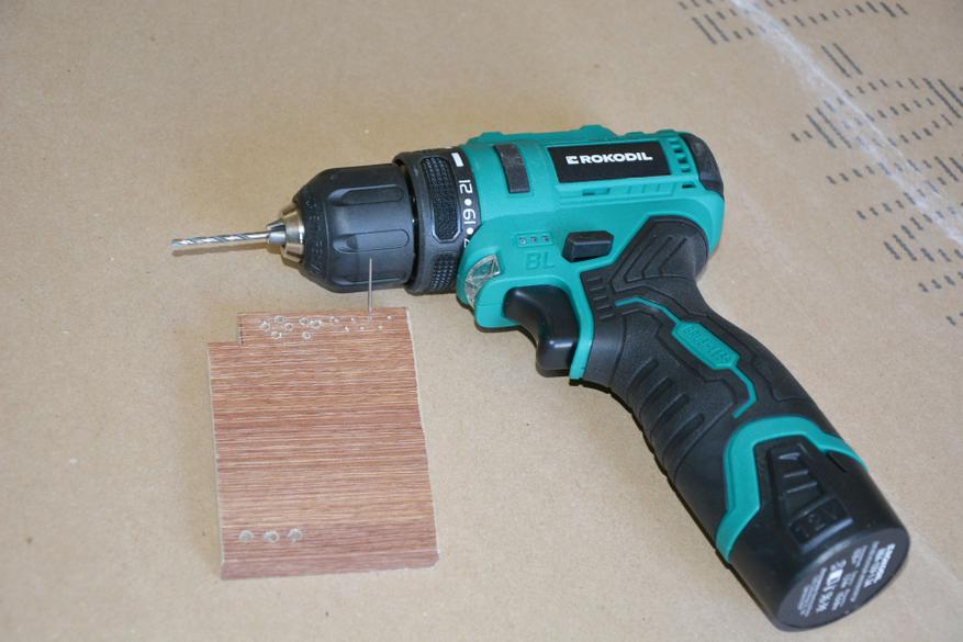 Практические испытания начал со сверления обрезка обналички из МДФ. Материал вязкий, сверла 1 и 3 мм. Никаких затруднений у Rokodil Twist 2 Compact это задание не вызвало.