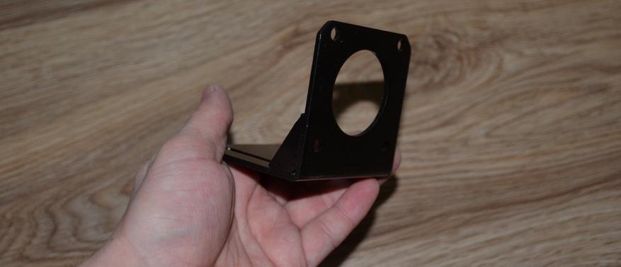 Скобы представляют собой металлические уголки с пазами для крепления к раме станка, и отверстиями для установки шагового двигателя. Уголки усилены по краям.