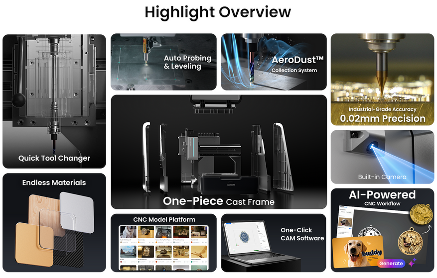Для Z1 будут доступны те же дополнительные модули, что и для старших моделей: комплект 4-й оси и лазерный модуль мощностью 5 Вт. Управление осуществляется через обновленное программное обеспечение Makera Studio (ранее Makera CAM) и приложение Makera, совместимое с Windows, Linux, macOS, iOS и Android.