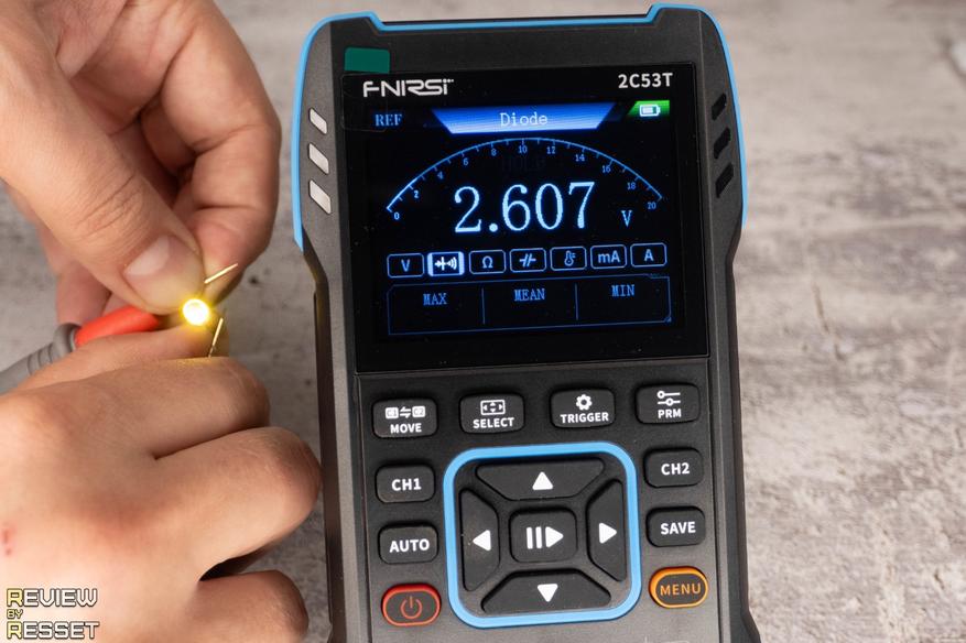 Прозвонка работает нормально, при переключении на диоды так же проблем нет, зажигает даже образцы с повышенным напряжеинем.