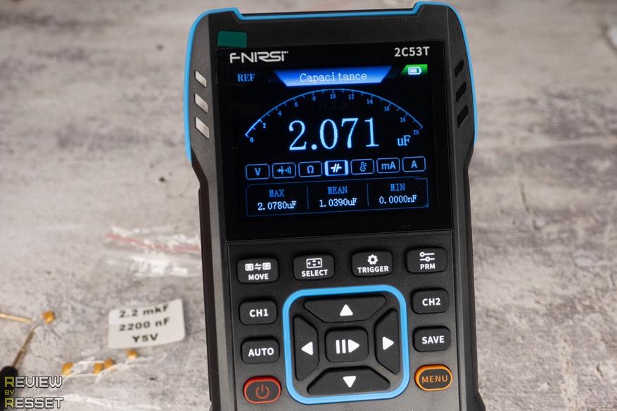 То ж самое с измерением сопротивления и ёмкости, верхние кнопки ничего не меняют.