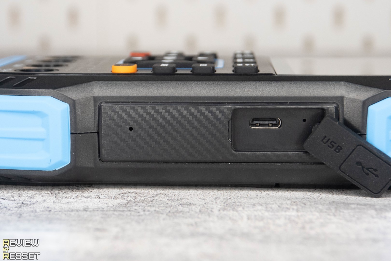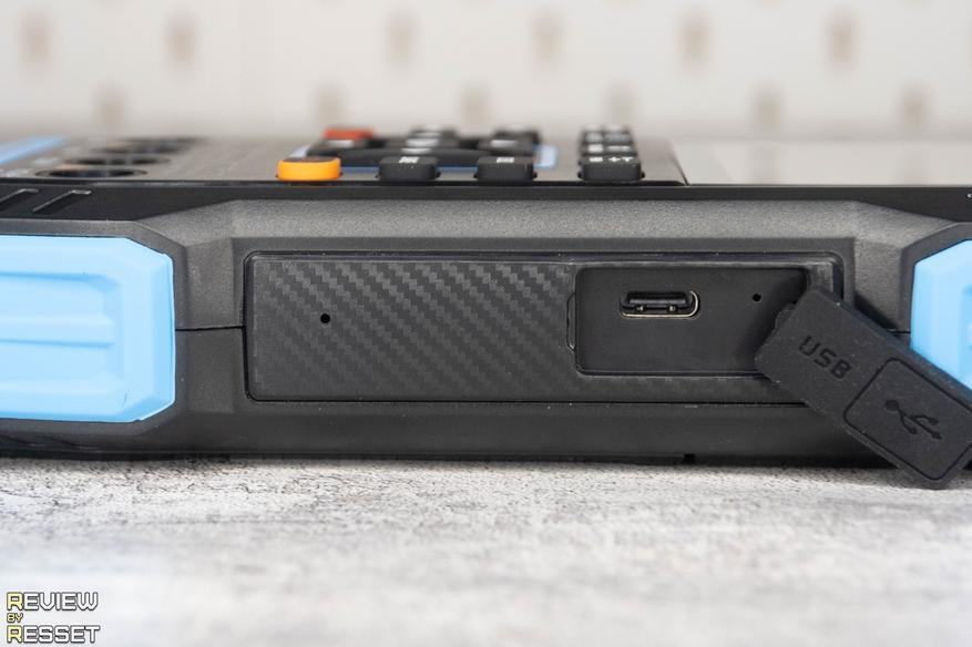 Сбоку под резиновой заглушкой спрятан Type-C для зарядки и передачи данных. Имеется и откидная ножка сзади для установки корпуса под более удобным для пользователя углом.