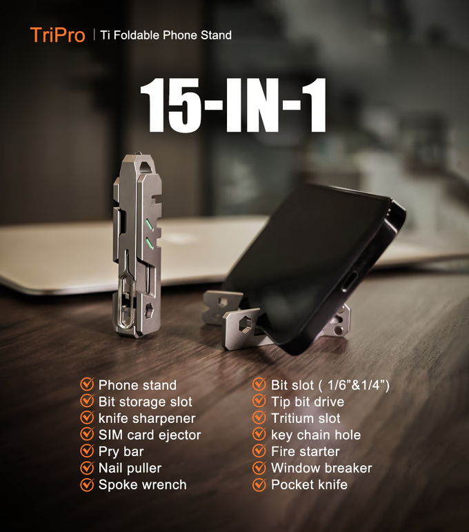 Мультитул, который всегда поддержит смартфон: представлен титановый TriPro Stand