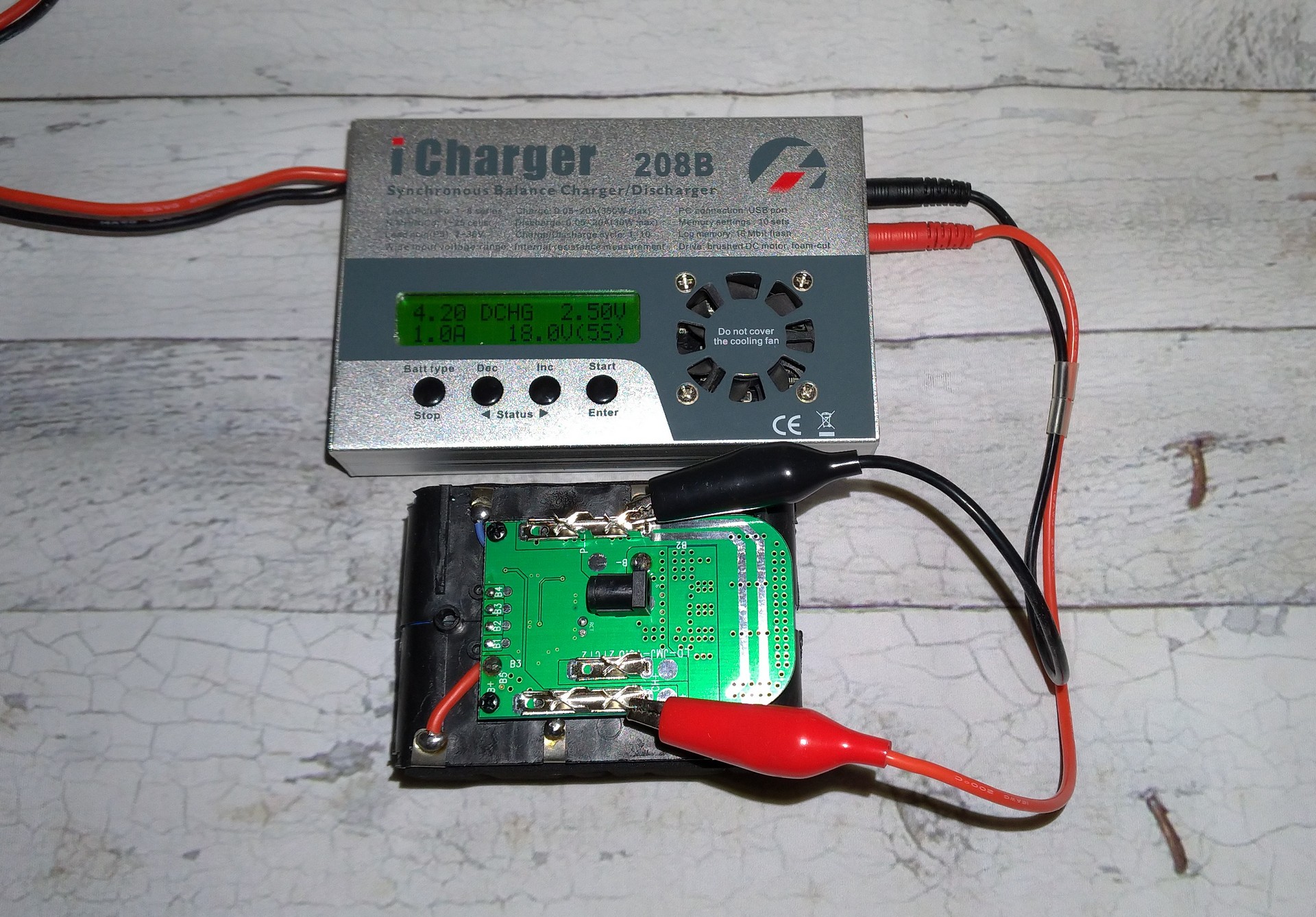 Ну и главный момент, какова же реальная емкость? Для теста использовалось модельное зарядное устройство iCharger 208B, ток разряда 1А, отсечка на 2,5V (12,5V общ.):