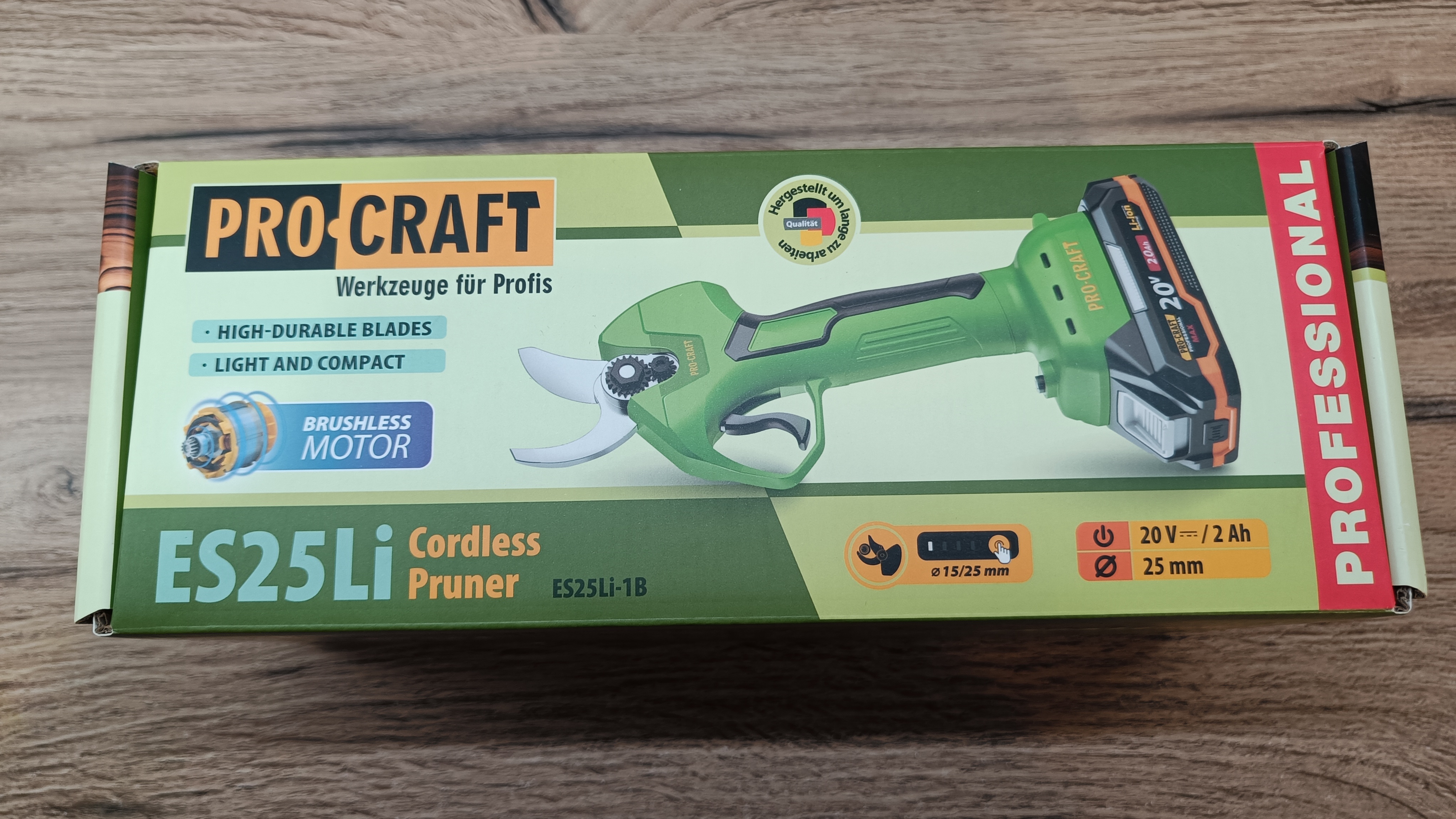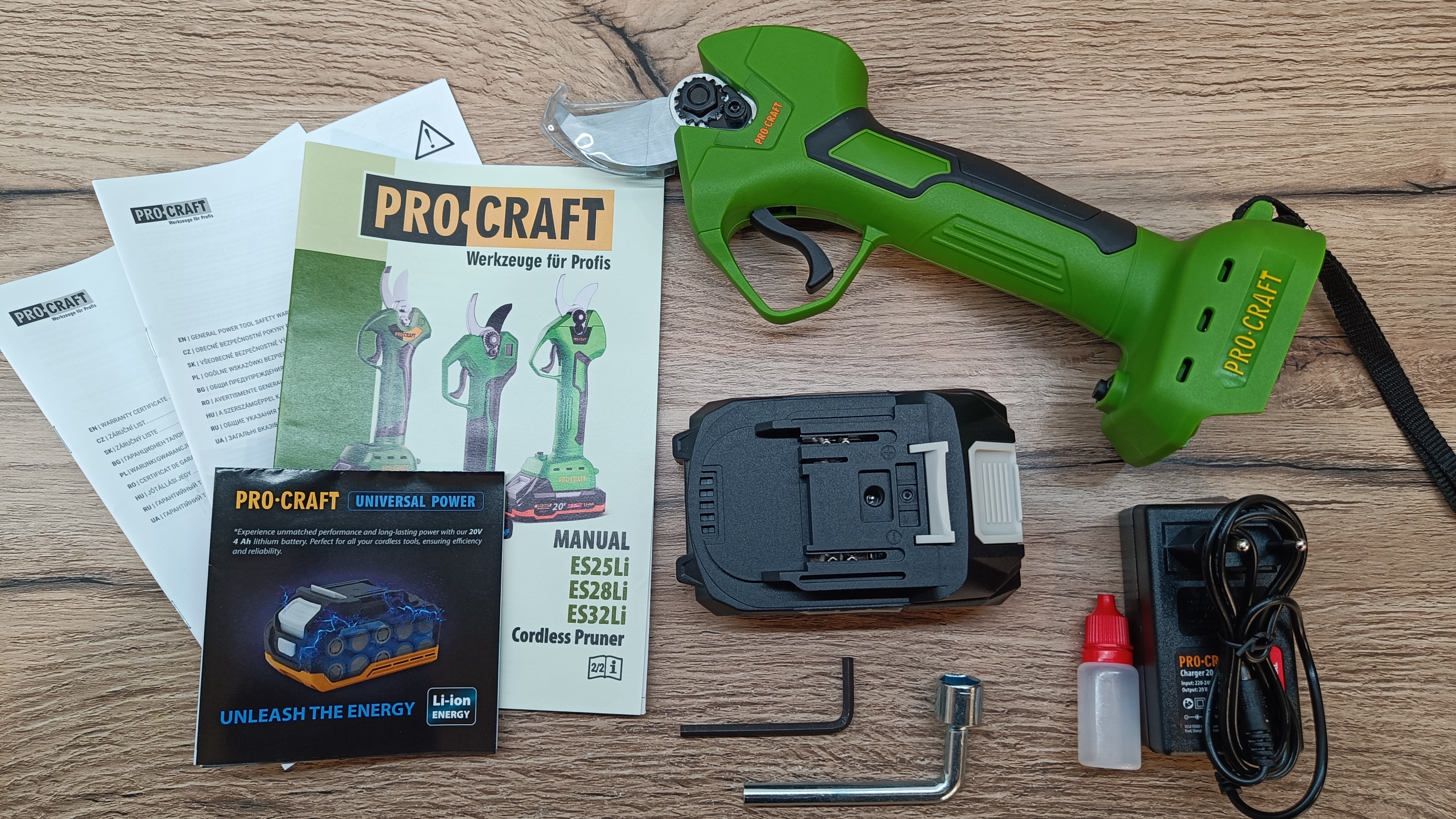 Любой дачник согласится, что секатор в саду или на даче, необходим. Без него ни яблоню не подрежешь, ни куст смородины не проредить. У меня на участке деревьев и кустарников довольно много, что весной и осенью приходиться довольно много работать ручным секатором. В какой-то момент мне это надоело, и я решил попробовать аккумуляторный секатор, который в разы упрощает обрезку. Одним из требований был мощный бесщёточный двигатель, чтобы служил долго и не требовал обслуживания. Предлагаю более детально рассмотреть аккумуляторный секатор PROCRAFT ES25Li, работающем на бесщеточном двигателе. В комплекте есть необходимые инструменты для обслуживания, аккумулятор на 2Ач и блок питания. Инструмент позволяет резать ветки до 25 мм в диаметре. Правильная развесовка инструмента не нагружает руку при длительной работе и позволяет выполнять задачи в дебрях кустов.