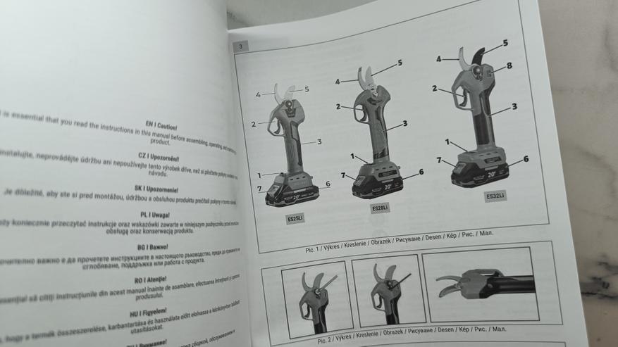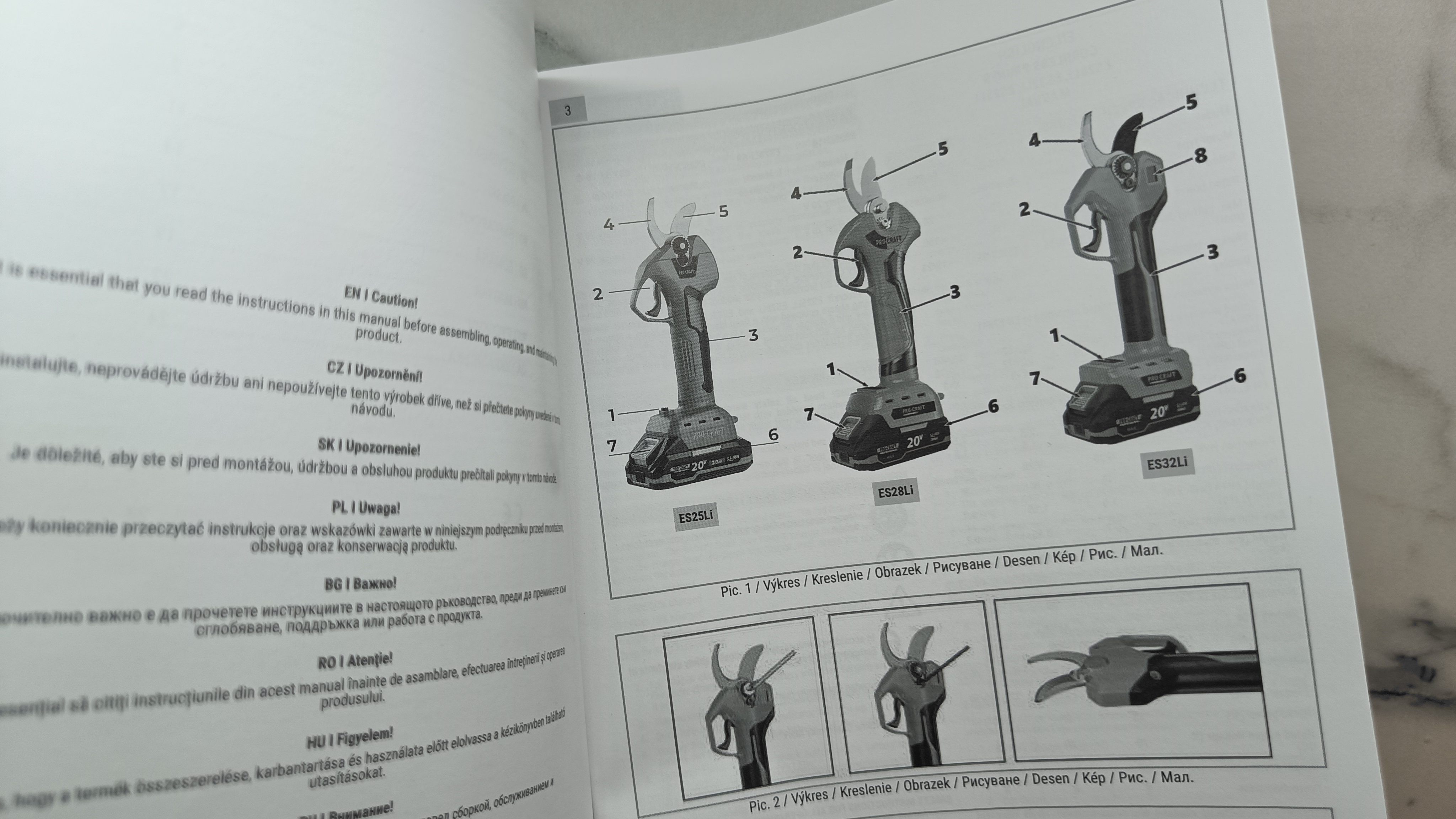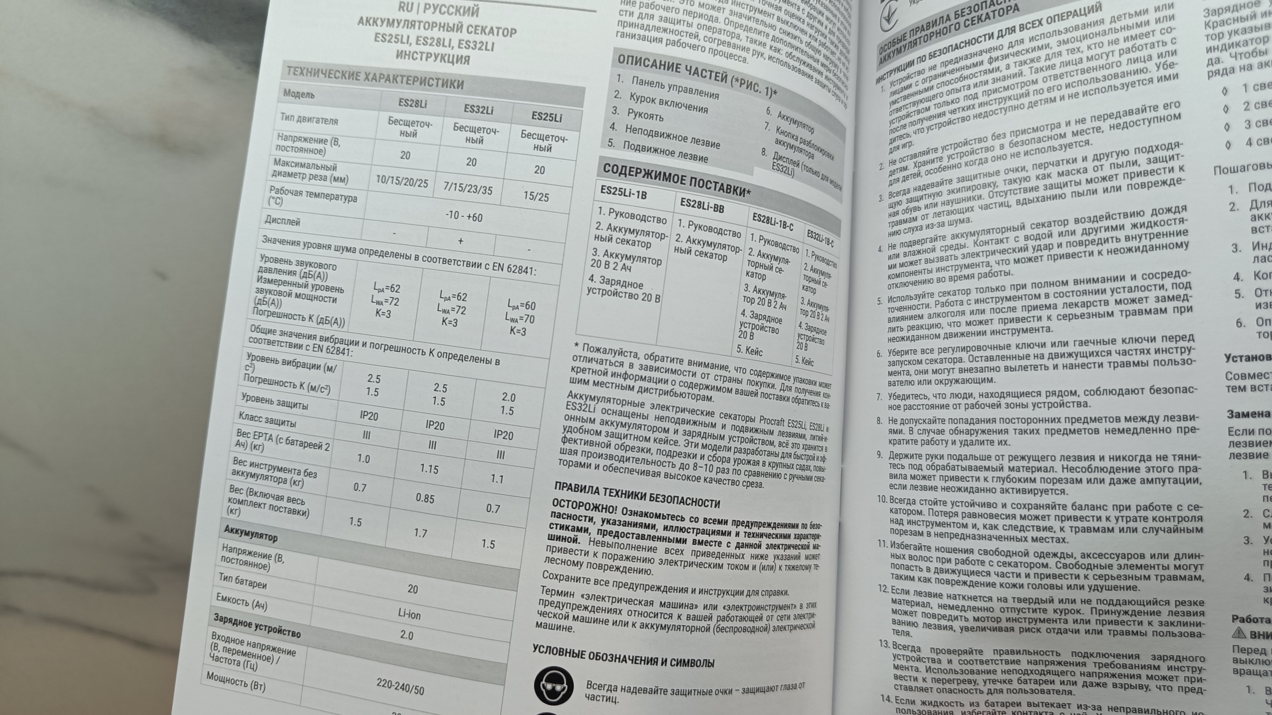 Инструкция универсальная и подходит сразу к трем моделям электрических аккумуляторных секаторов. Все модели под 20V аккумуляторы, но различаются в основном весом и параметром максимального диаметра реза. А еще в инструкции детально расписаны возможности по настройке и обслуживанию инструмента. Дополнительно можно ознакомиться со всем ассортиментом аккумуляторного инструмента от PROCRAFT и фирменной серией аккумуляторов.