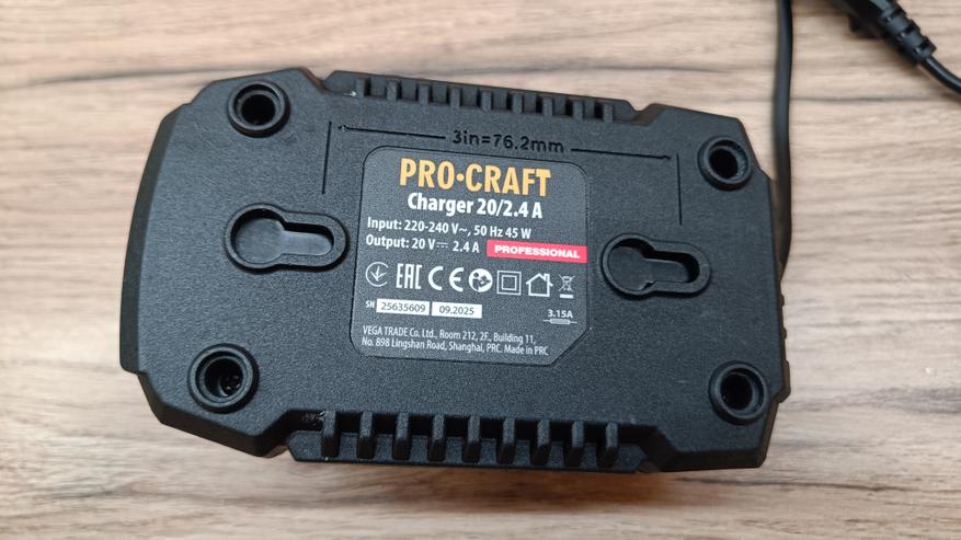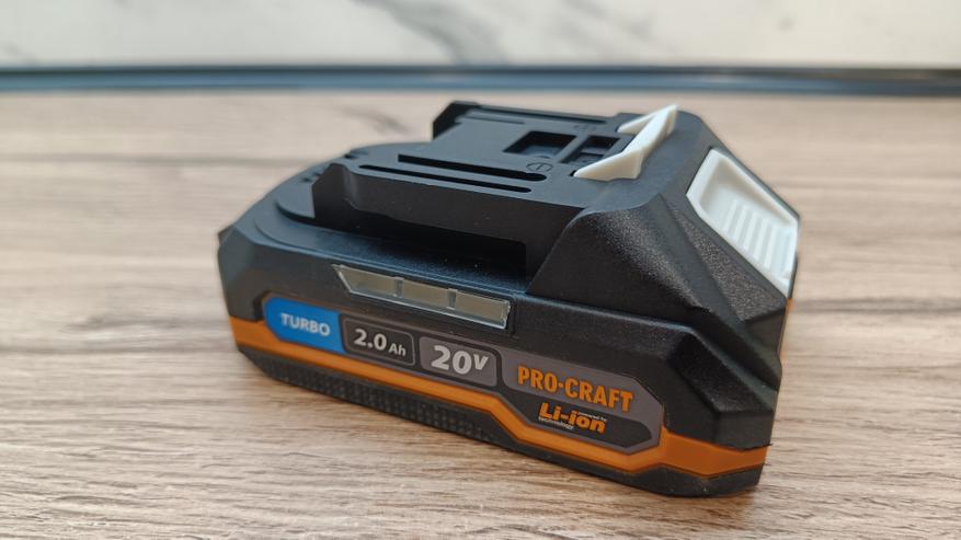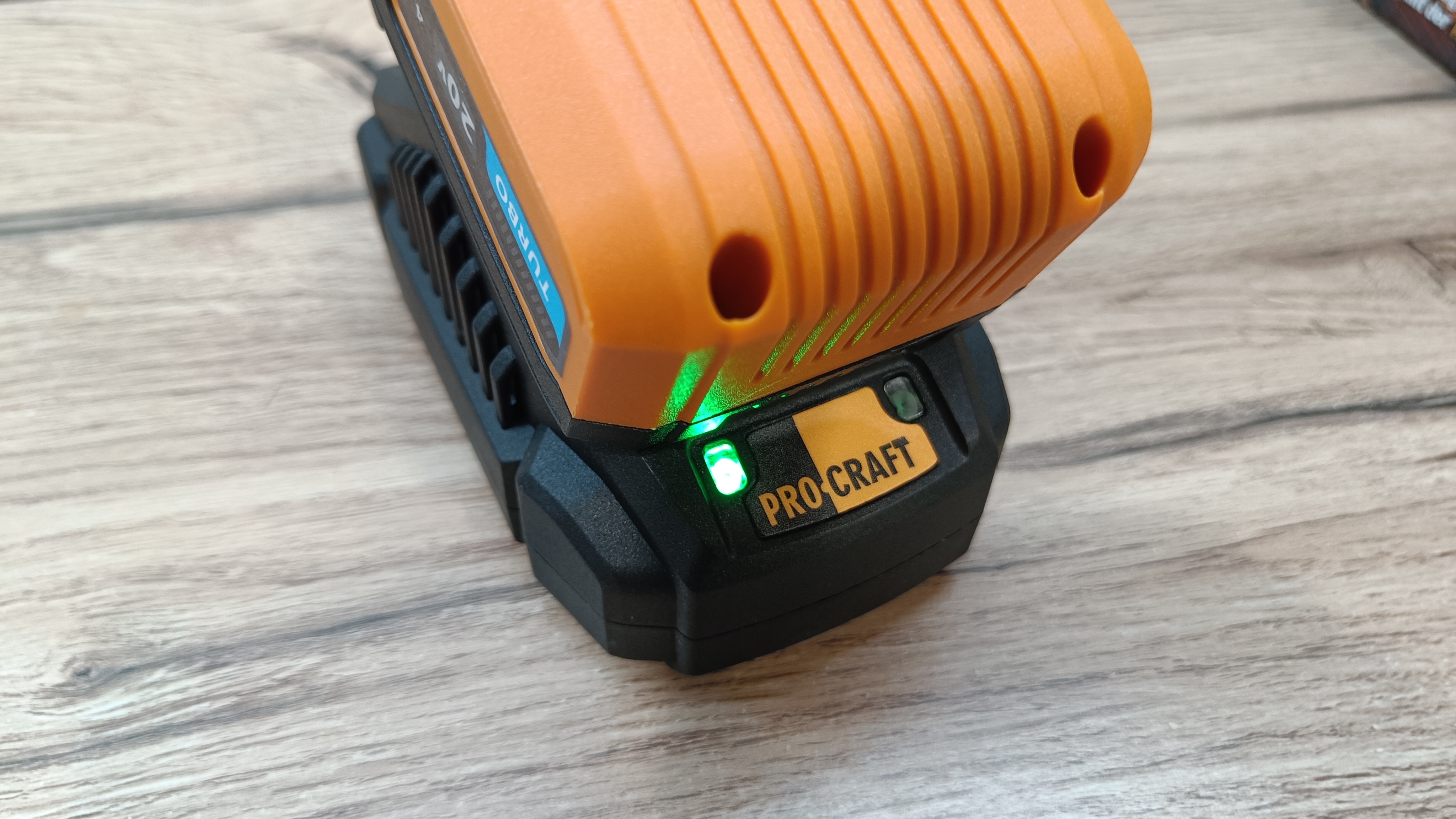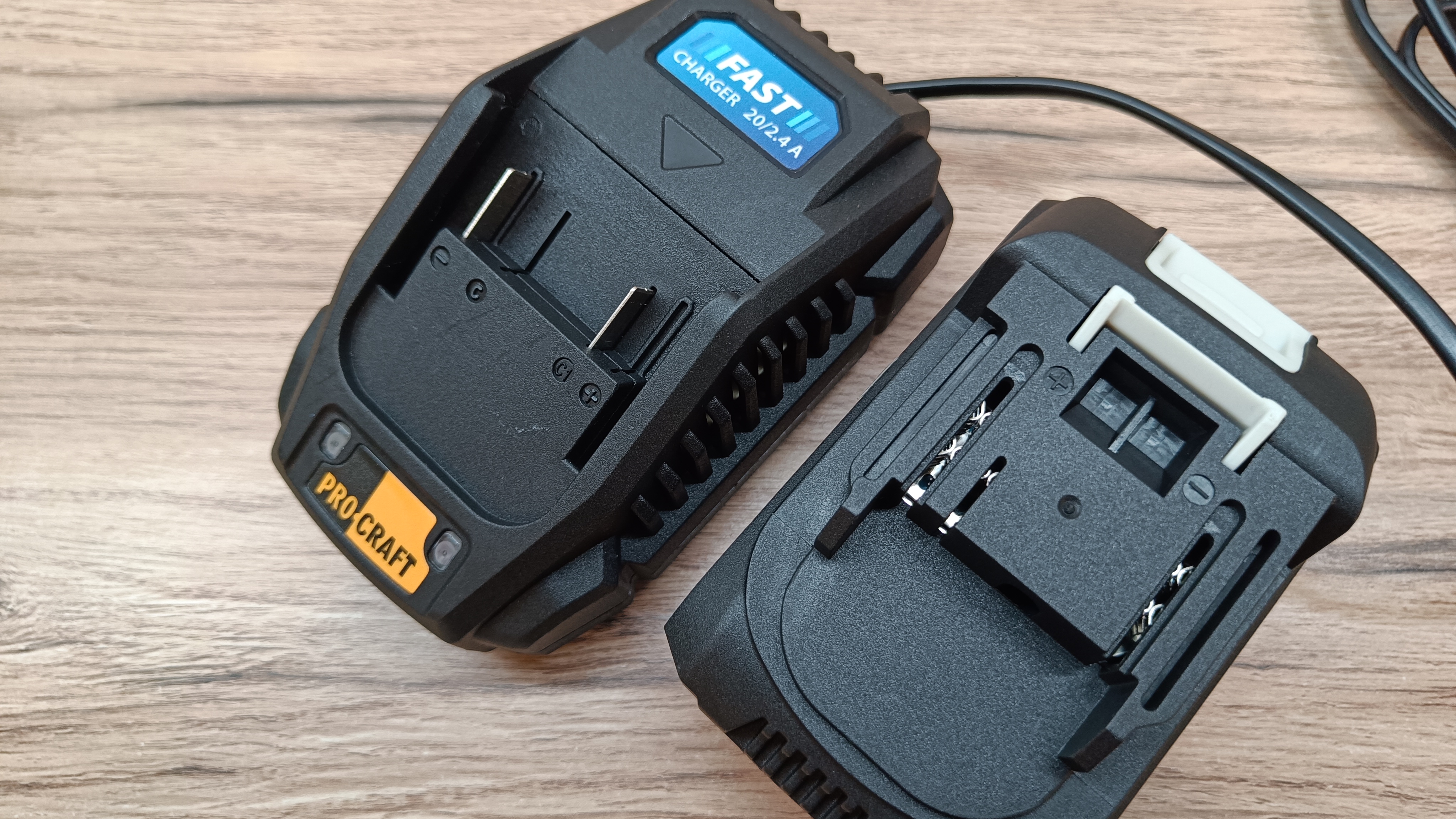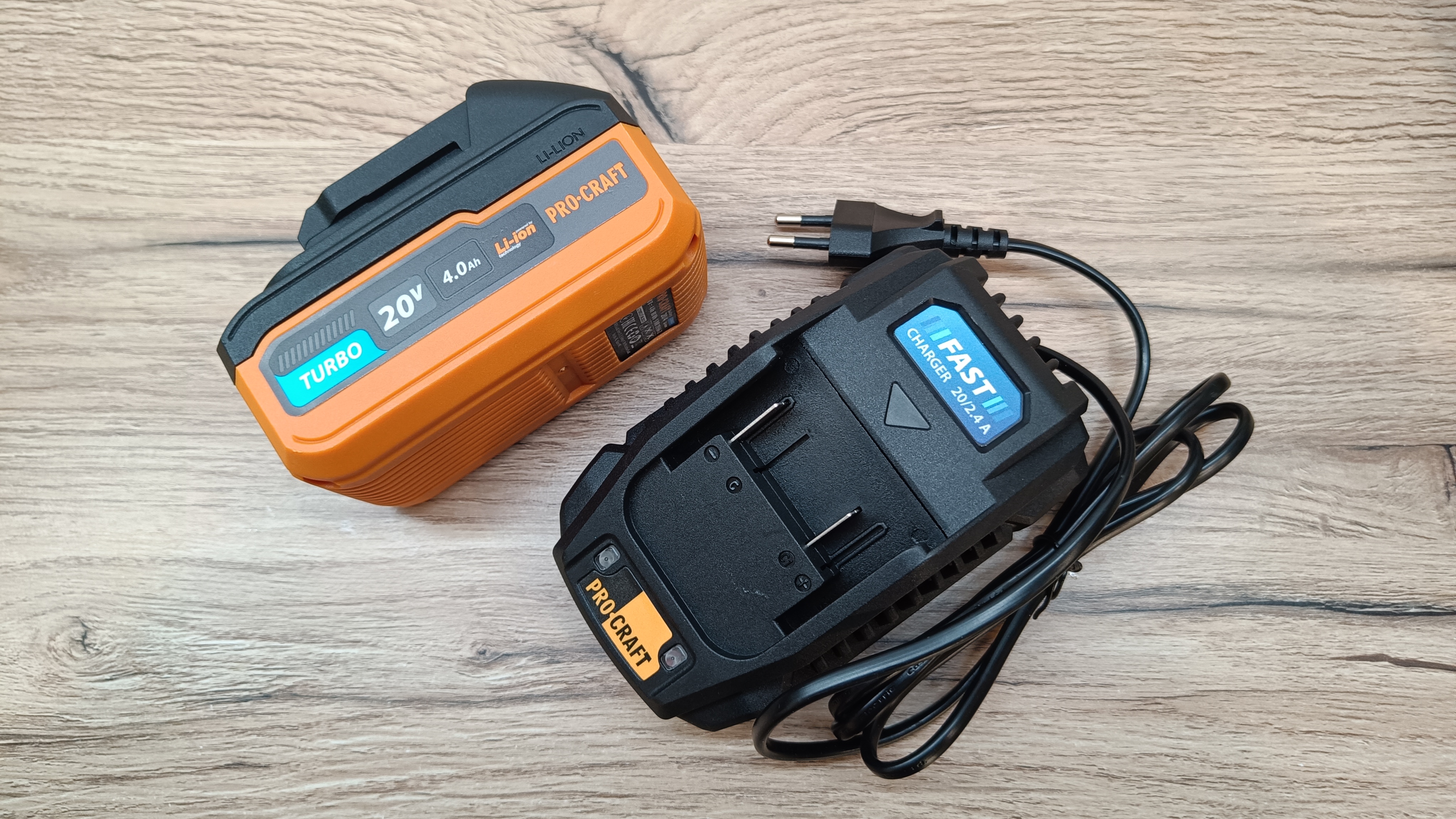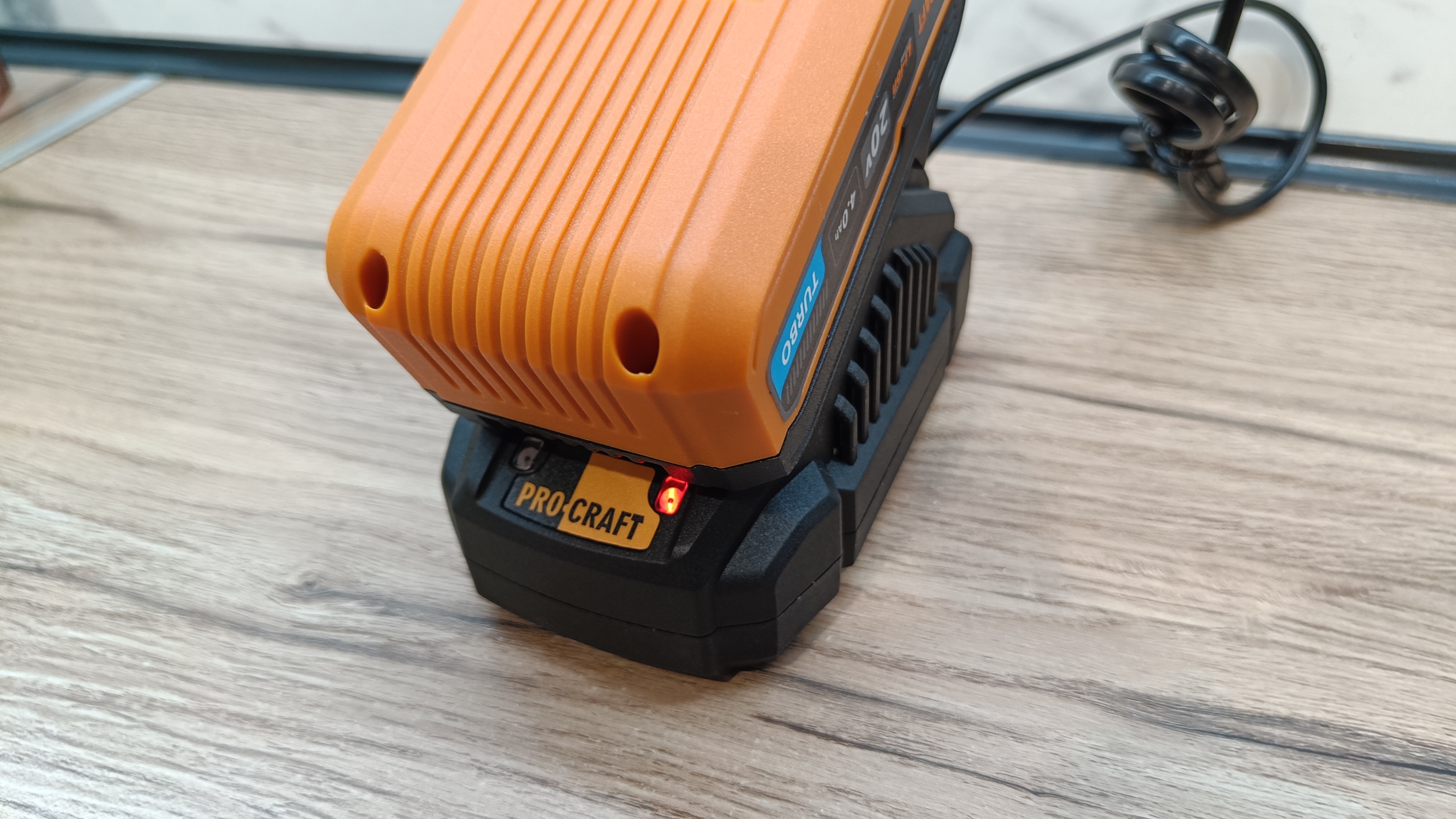 Для расширения возможностей инструмента прикупил дополнительный аккумулятор PROCRAFT BAT20/4 из серии Turbo и зарядную станцию с функцией быстрой зарядки. Цена приятно удивила за аккумулятор емкостью 4 Ач. Зарядка на станции для меня более предпочтительна.