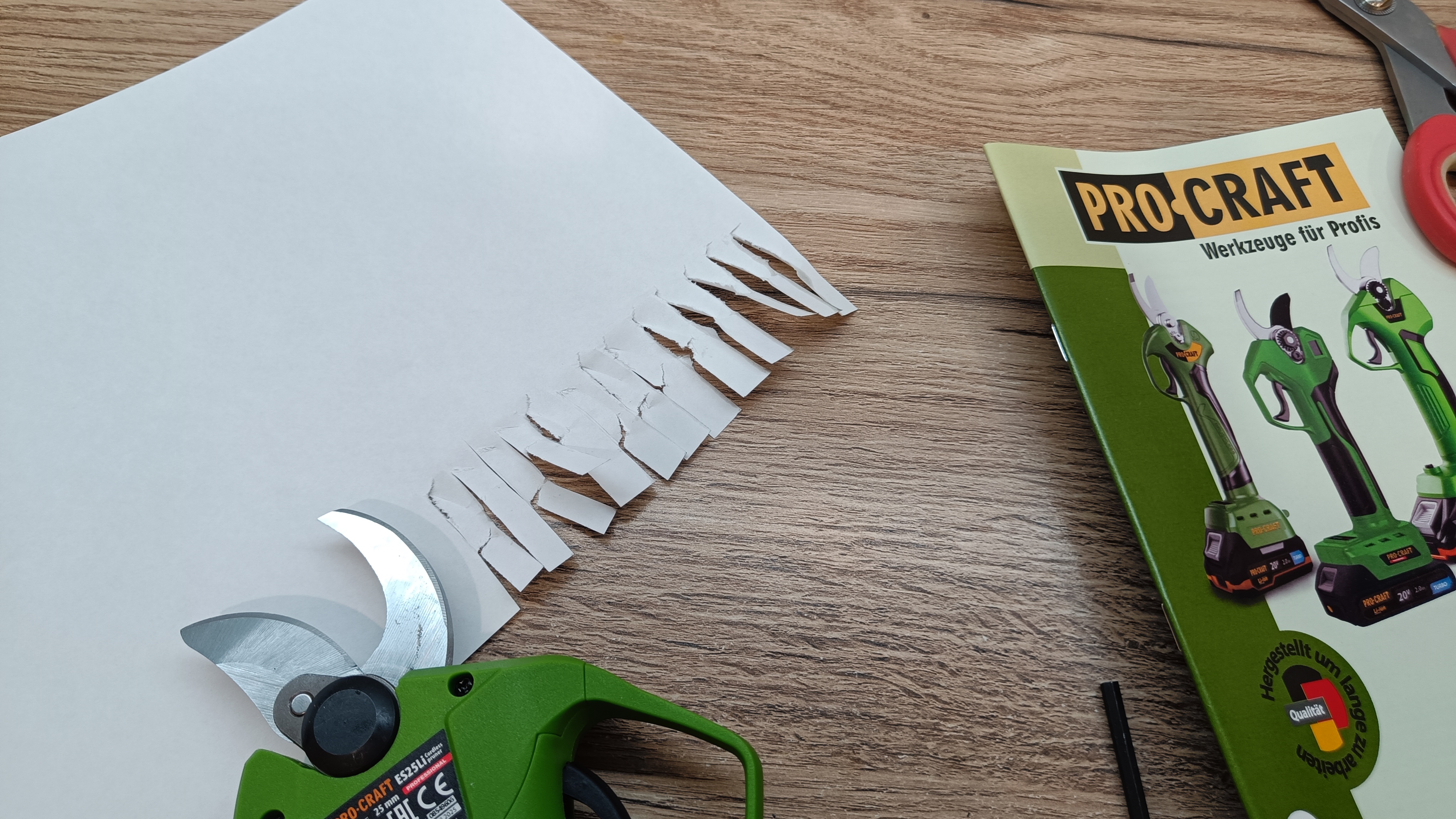 Перед работой проверил, как секатор режет бумаг. Думал, что он с ней не справится, а будет просто мять. Но, я ошибался. Режет как ножницы, лишь слегка надрывает.