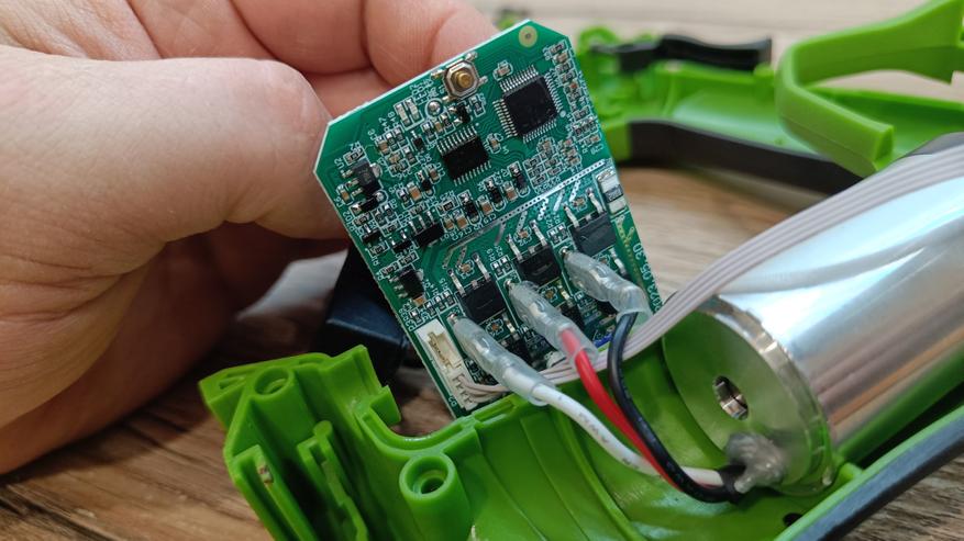 Внутри действительно бесщеточный двигатель с маркировкой 3125 от Yagui. Вся разводка выполнена с использованием провода в силиконовой оболочке. На корпусе виден толстый слой резинового напыления, который не сотрется даже при длительной эксплуатации.
