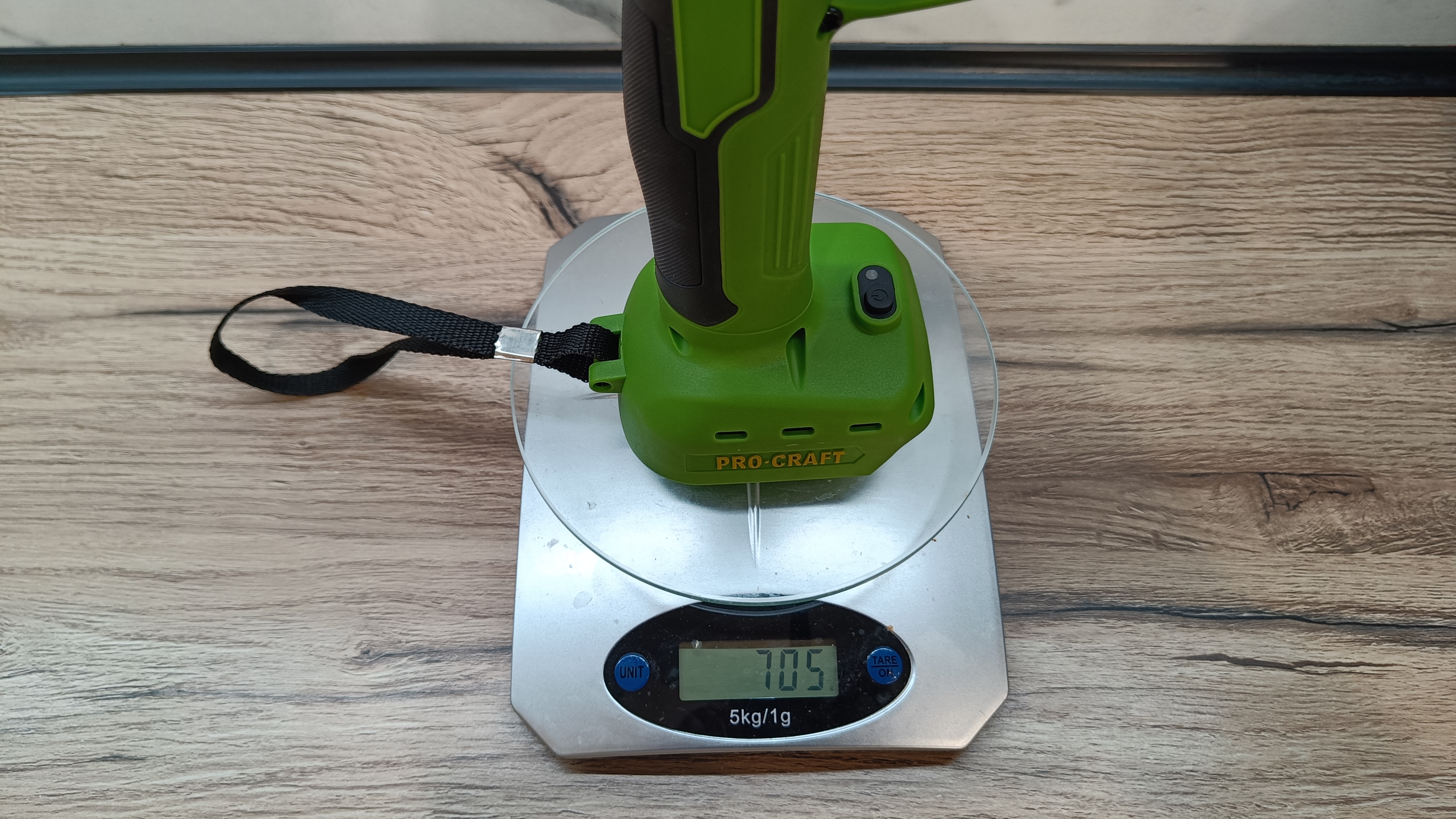 Штатный аккумулятор секатора весит 410 гр, а сам инструмент — 705 г. Вес чуть более килограмма, что не сильно отяжеляет работу. Даже в глубоких зарослях им можно будет спокойно управлять и срезать необходимые ветки.