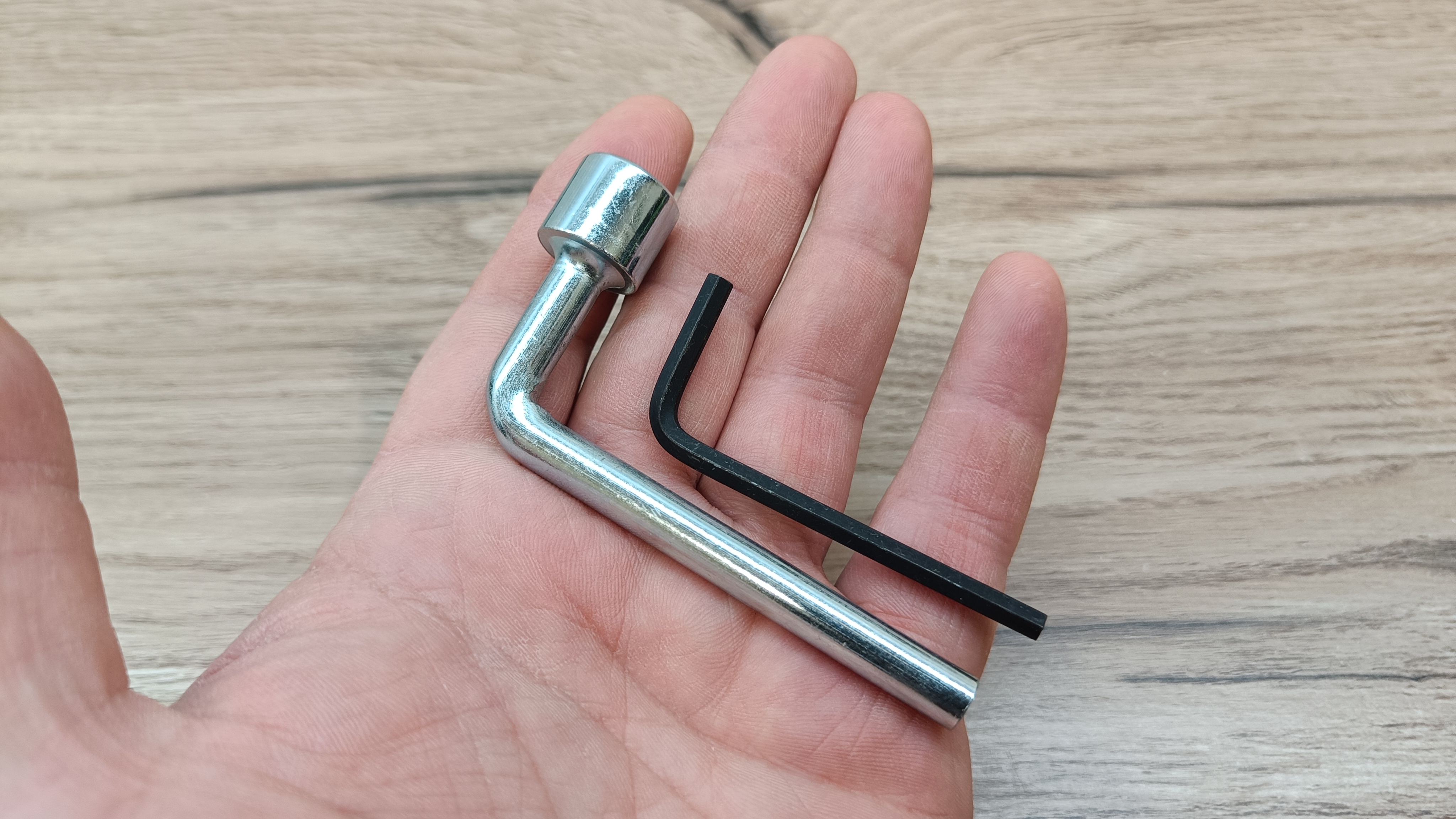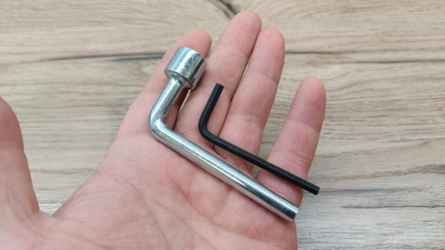 В комплекте поставки есть инструменты для обслуживания. Размеры маленькие, но вполне достаточно, чтобы открутить фиксатор режущих ножей.