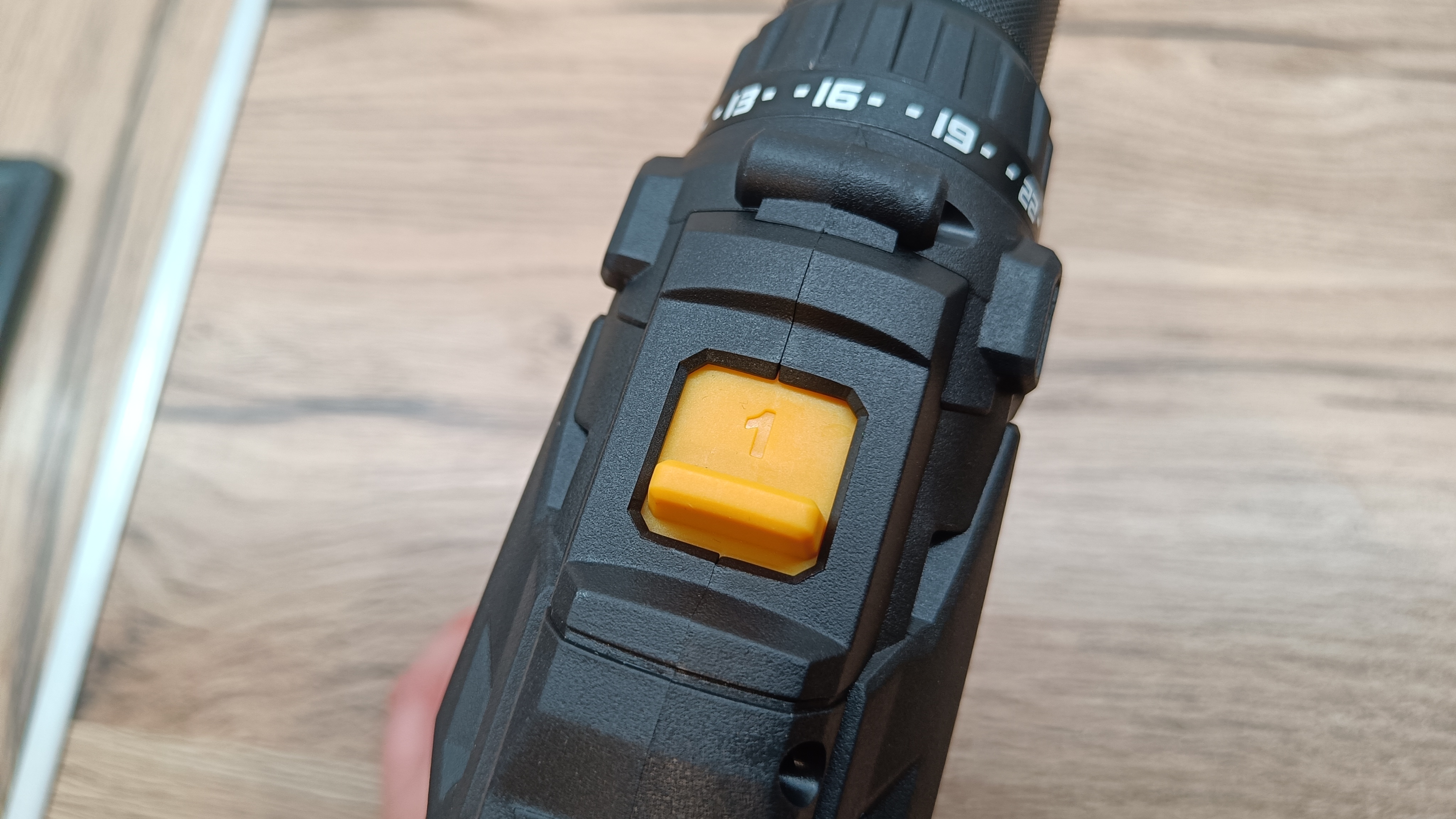 Чуть выше курка разместился переключатель реверса. Среднее положение полностью блокирует запуск шуруповерта.
