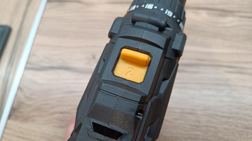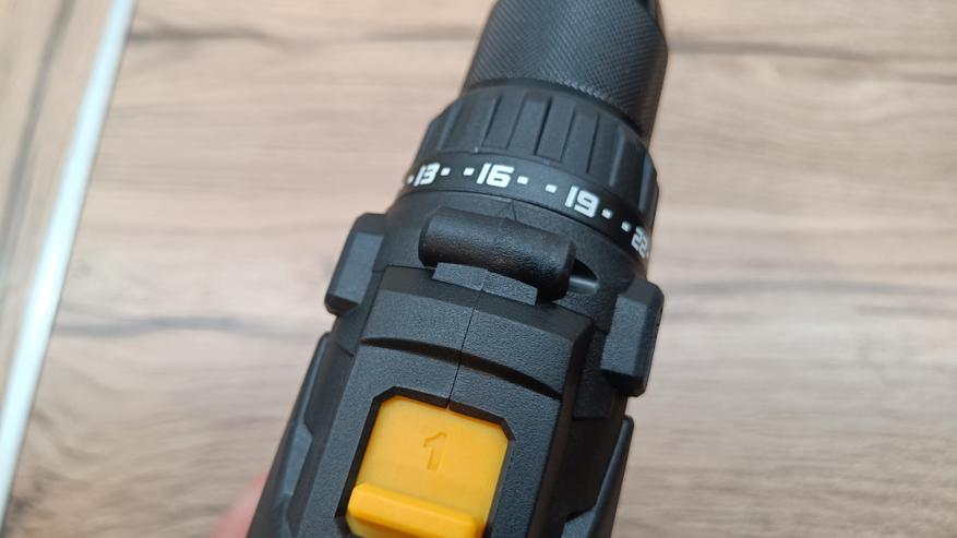 Количество ступеней регулировки расширено до 25 значений, что положительно сказывается на комфортном использовании при закручивании саморезов. Последним режимом выделено — сверление. Каждый выбранный режим жестко фиксируется и самостоятельно не изменится.