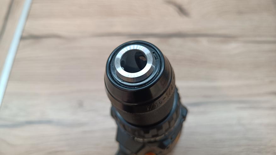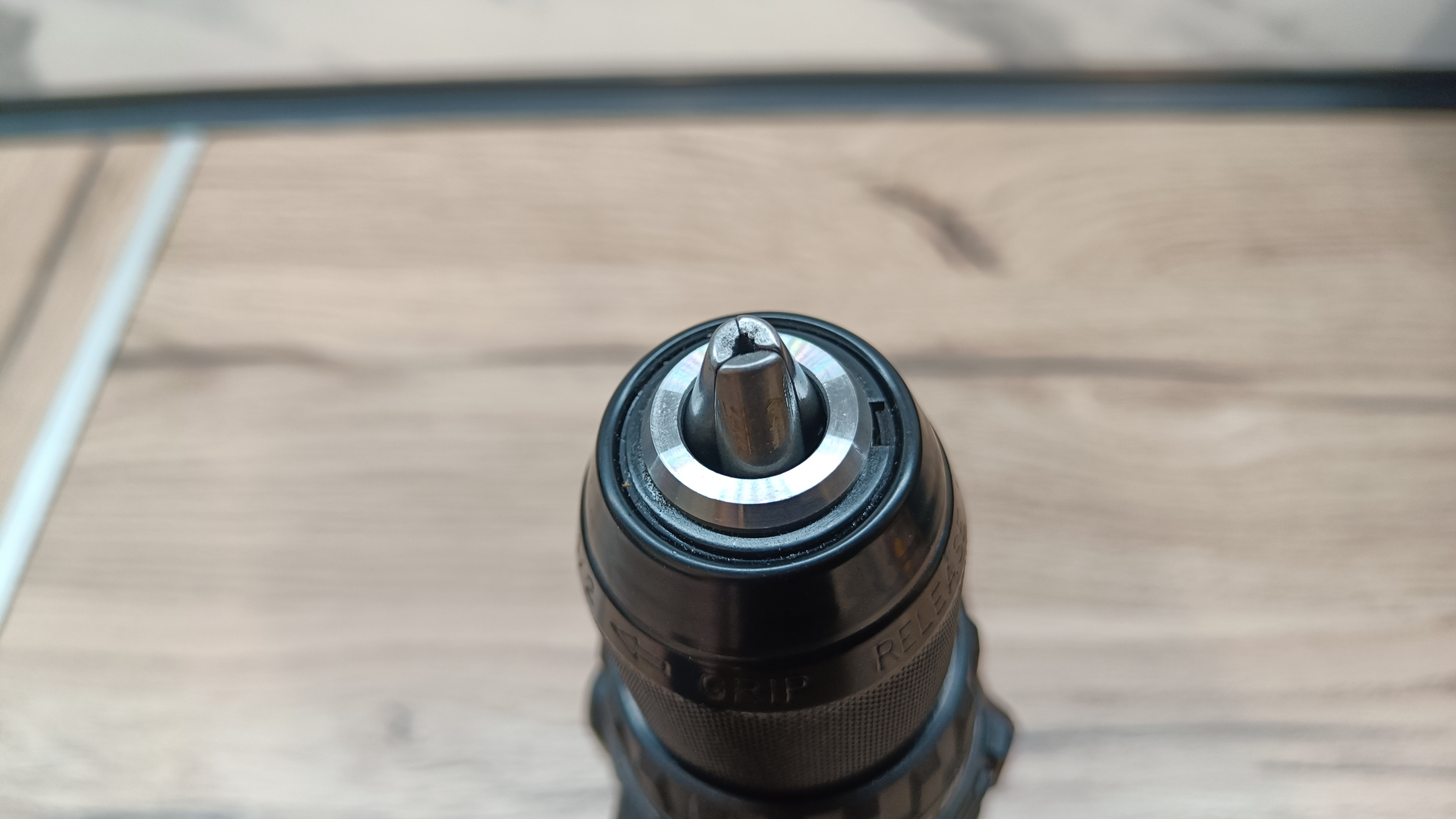 Быстрозажимной патрон из металла. Позволяет устанавливать сверла до 13 размера. Удобно, что шпиндель самостоятельно блокируется и затягивать оснастку или расходники можно одной рукой. Металлический патрон более живучий при эксплуатации в условиях стройки и даже после падения останется невредим.