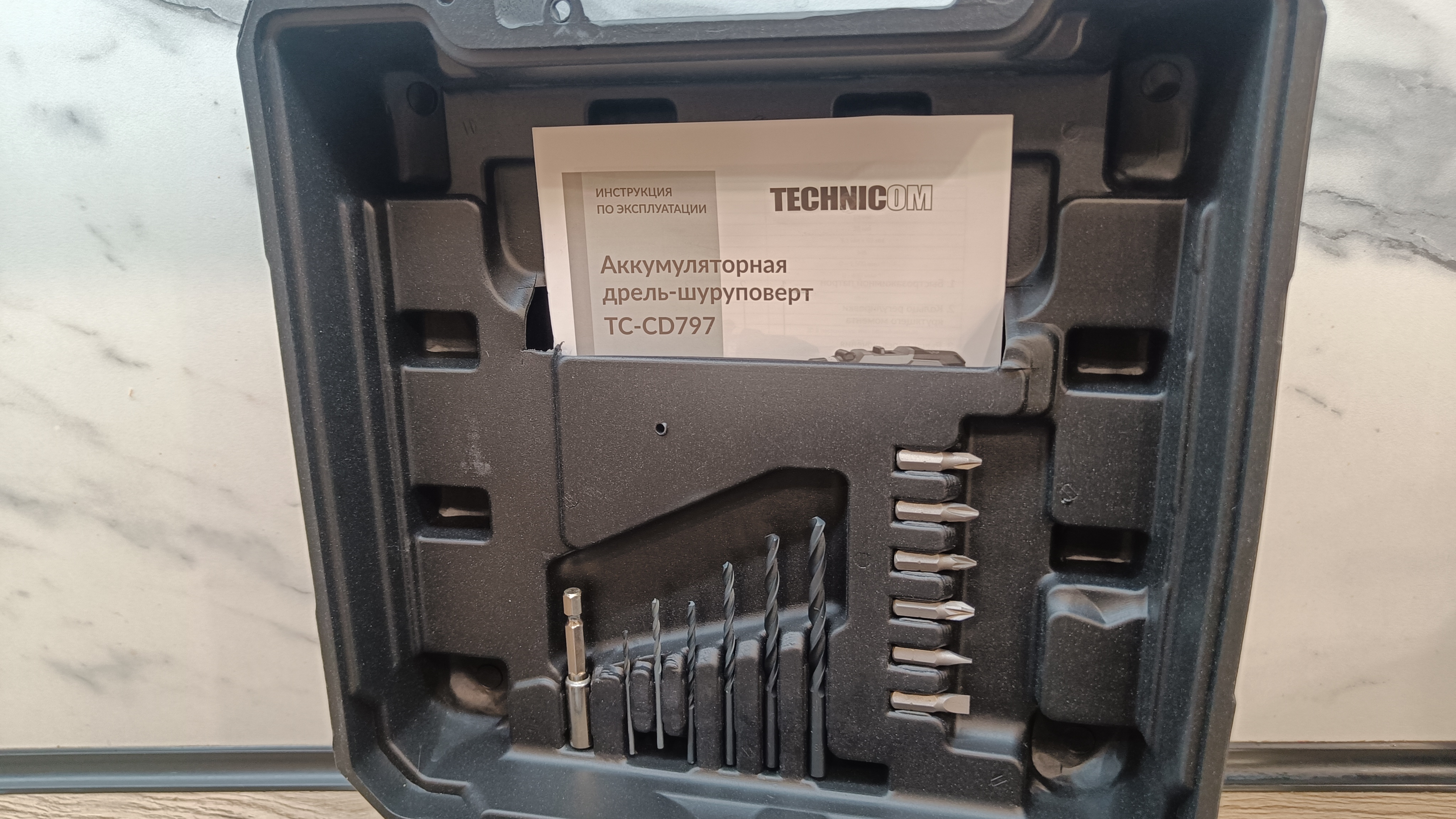 Обзор аккумуляторной дрели-шуруповёрта TECHNICOM TC-CD797: щеточный двигатель RS-755S, быстрозажимной патрон и 40 нМ
