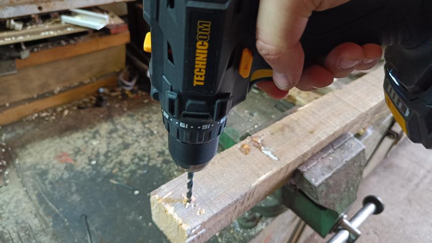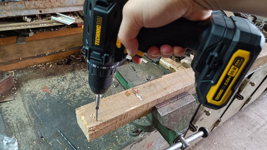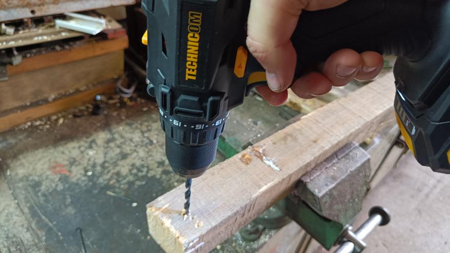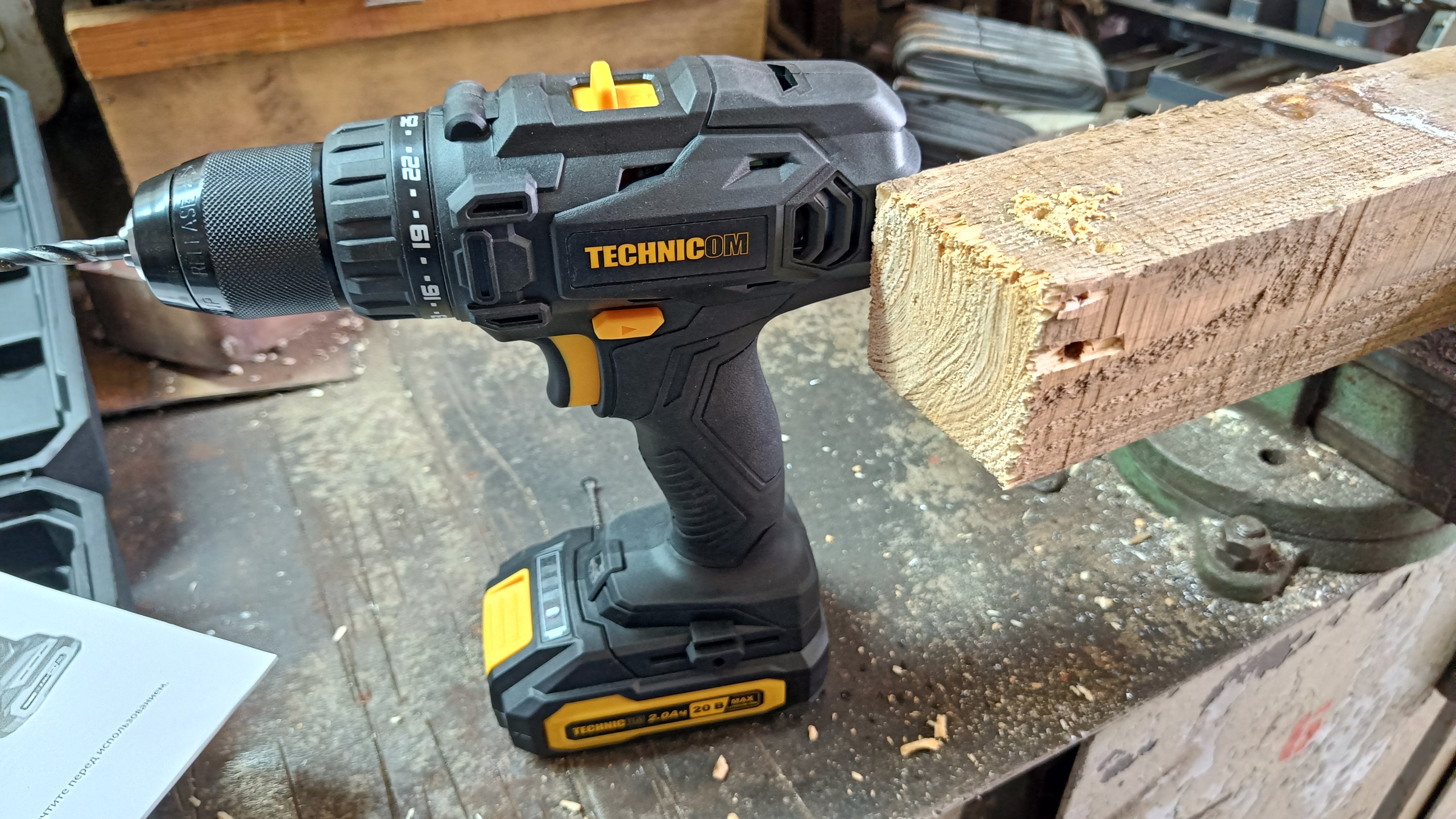 Если говорить по делу, то дрель-шуруповёрт TECHNICOM TC-CD797 полностью оправдывает ожидания. Инструмент уверенно справляется со своей главной работой — сверлением и закручиванием. И можно использовать его не только в домашних условиях. В реальных тестах дрель позволяет сверлить в дереве отверстия до 28 мм с использование перьевых сверл. С металлом шуруповерт справится сверлами до 13 мм и также с легкостью получится отверстие, без видимой нагрузки на двигатель.