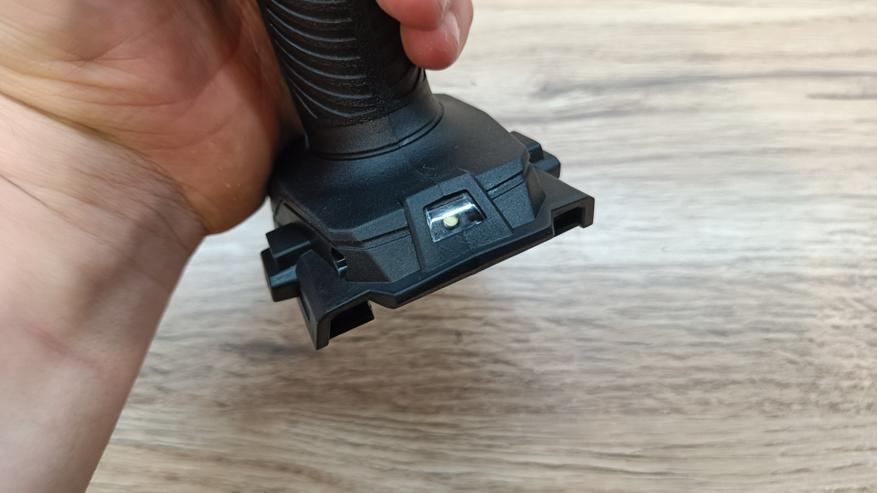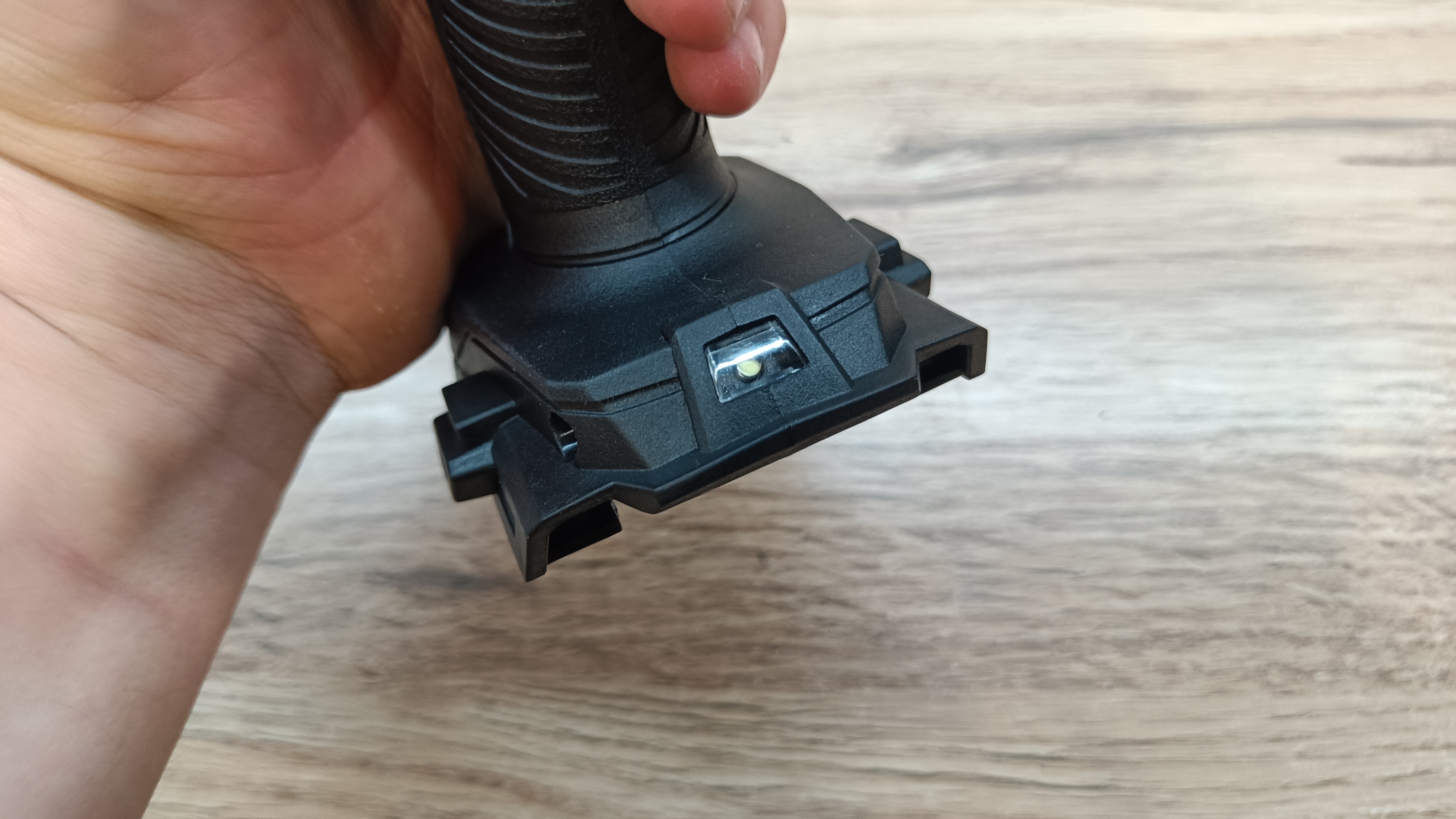 Над аккумулятором есть светодиодная подветка. Данное расположение значительно лучше освещает рабочую зону и не перекрывается патроном.