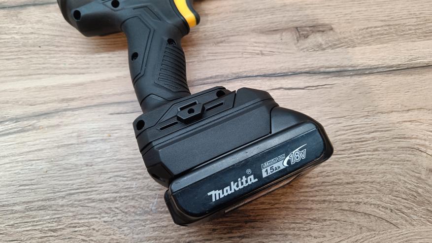 А еще, если у вас остались аккумуляторы от Makita, то с помощью фирменного переходника, их можно будет использовать. К меня, как раз такой есть. Поэтому, теперь докупать второй аккумулятор не потребуется.
