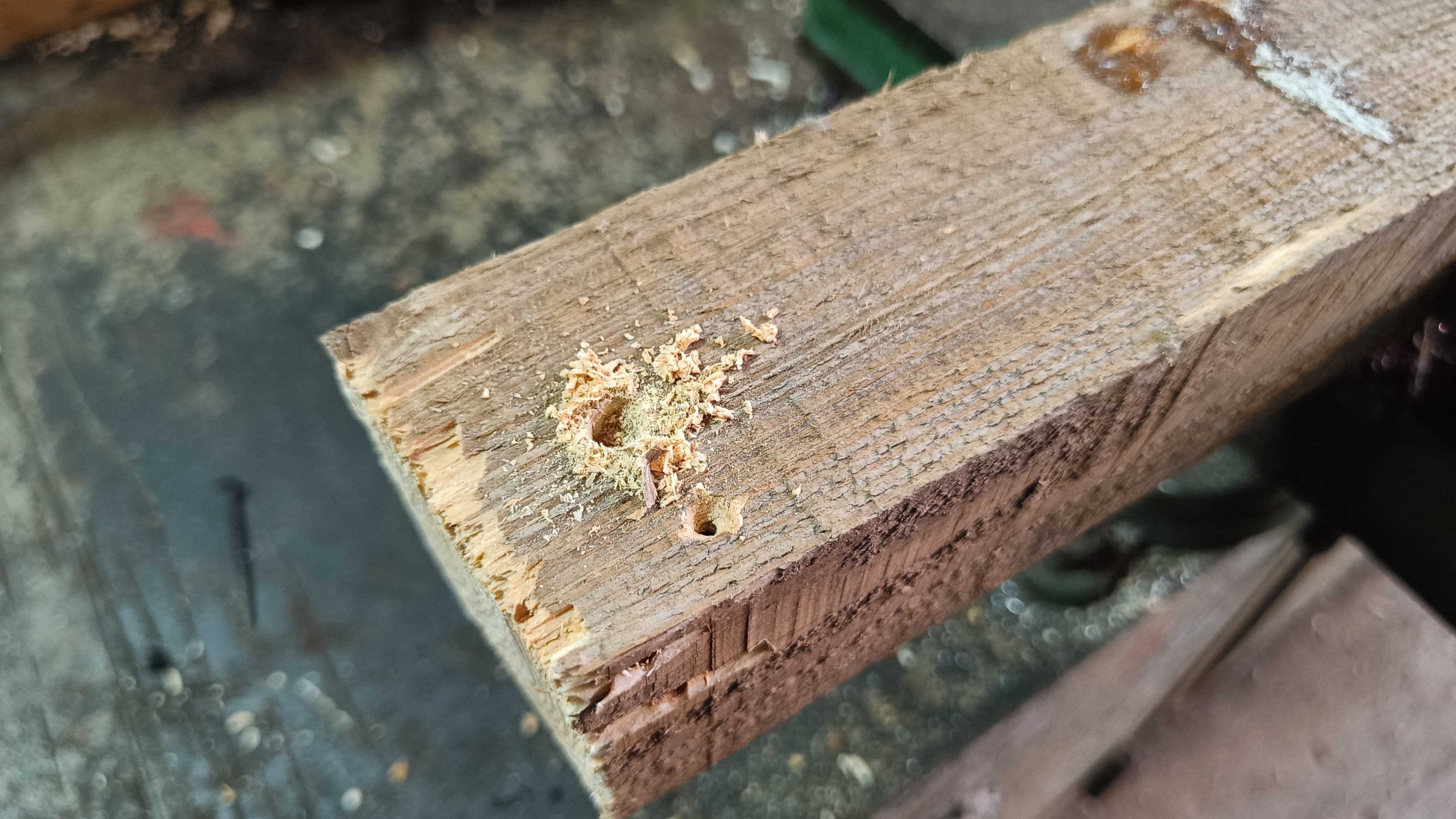 Шуруповерт достаточно мощный, чтобы закручивать саморезы в дерево, сверлить различные материалы в пределах заявленных диапазонах. Для удобства и контроля качества, буду использовать именно штатные расходники. Саморезы по дереву буду закручивать в брусок размерами 70*70 мм из хвойных пород дерева. При этом древесина довольно плотная и содержит следы смолы. Саморезы на 70 мм влетают в дерево без видимой задержки и если не уменьшить крутящий момент, то шляпка отлетит. Штатные биты не самого лучшего качества, но на непродолжительные работы их хватит. А если использовать их в домашних условиях, то хватит их надолго. К сожалению, они не магнитные и саморезы приходится придерживать во время закручивания. Комплекта из 6 бит хватит на различные саморезы, для закручивания в дерево, пластик или металл.