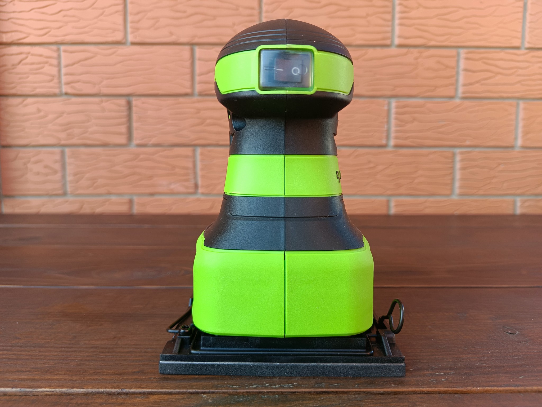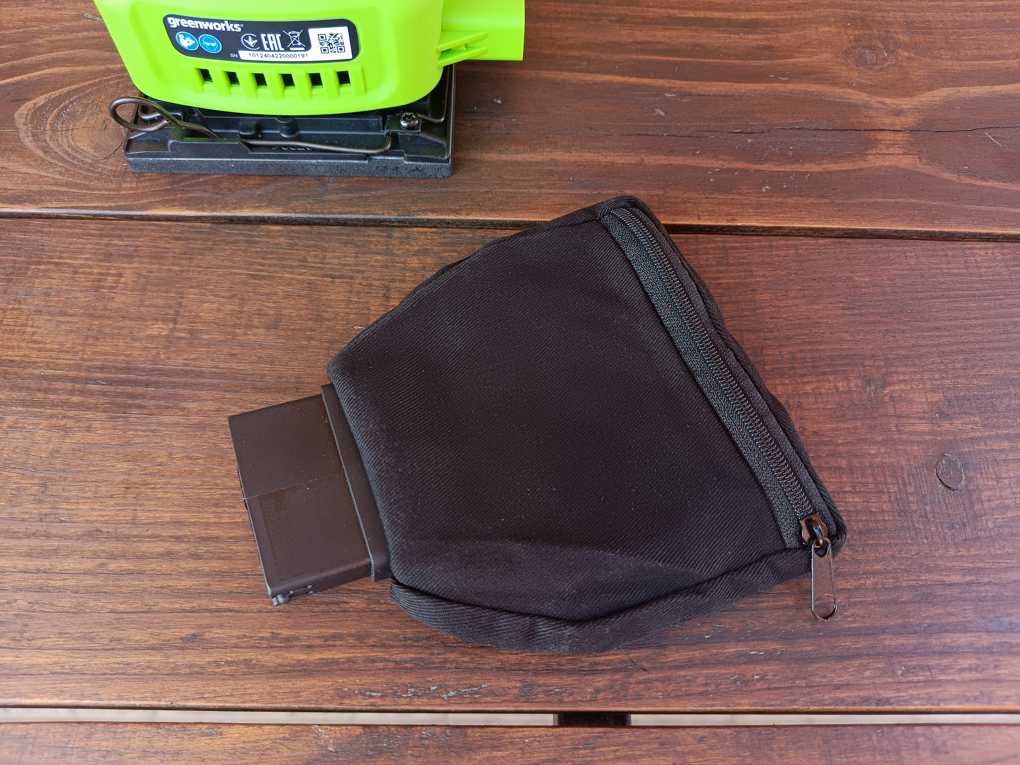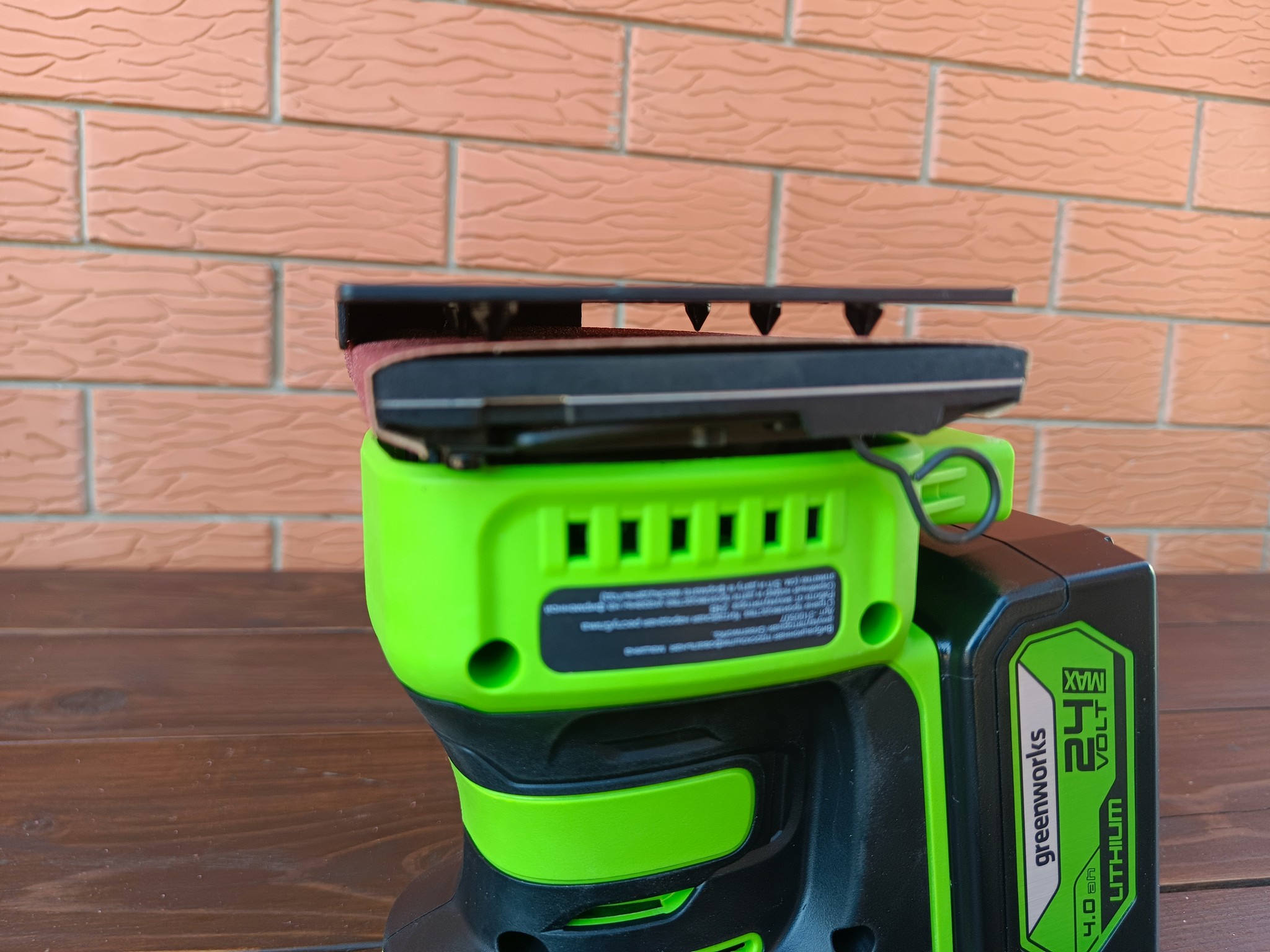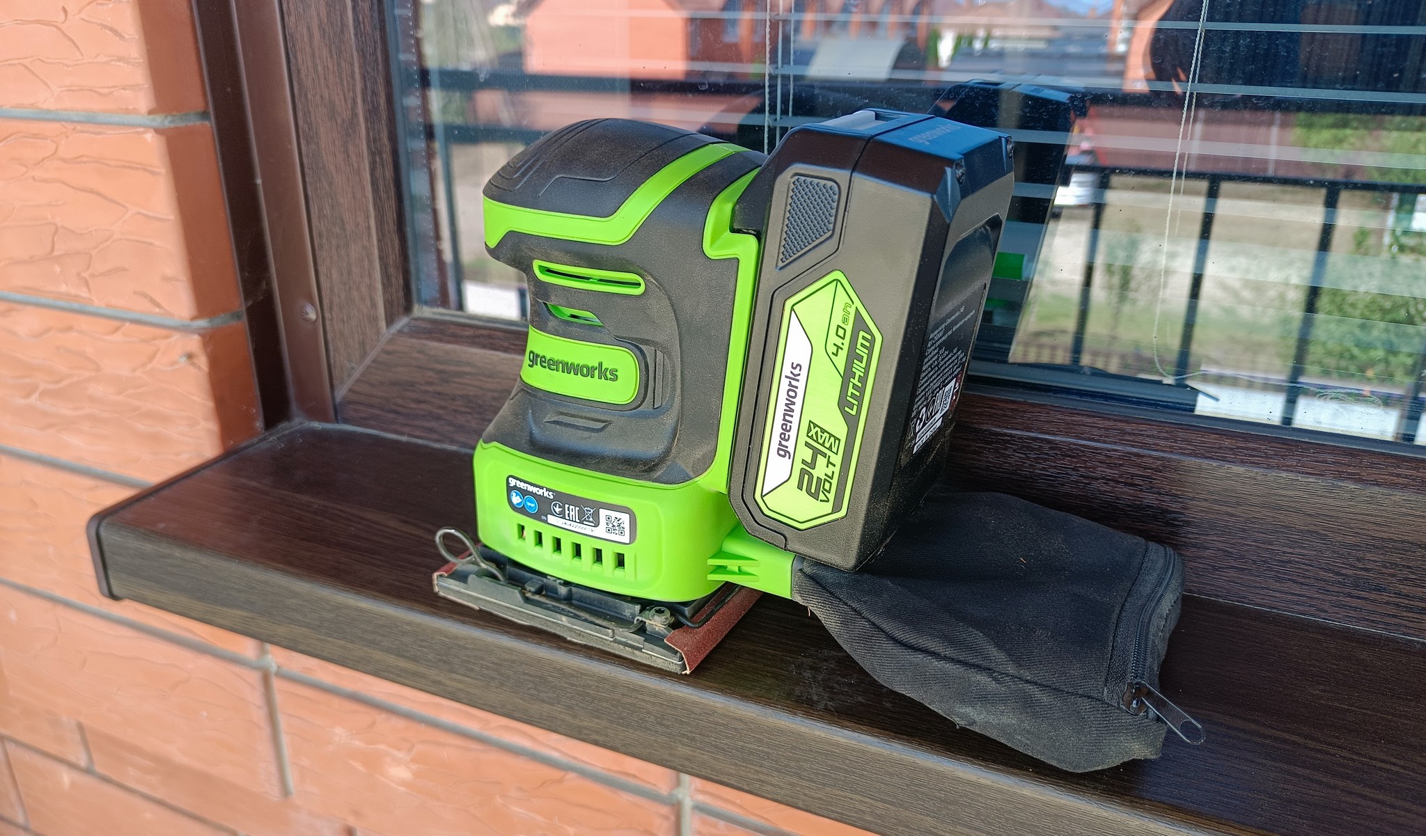 Greenworks G24SS14 оказался весьма неплохим устройством для домашнего использования. Наличие эффективной системы сбора пыли и отсутствие сетевого провода не только сказывается на банальном удобстве, но и позволяет относительно комфортно работать со шлифмашинкой при обработке стен и потолков и даже там, где в принципе нет электрической розетки.