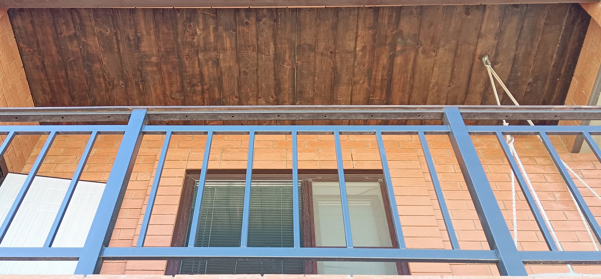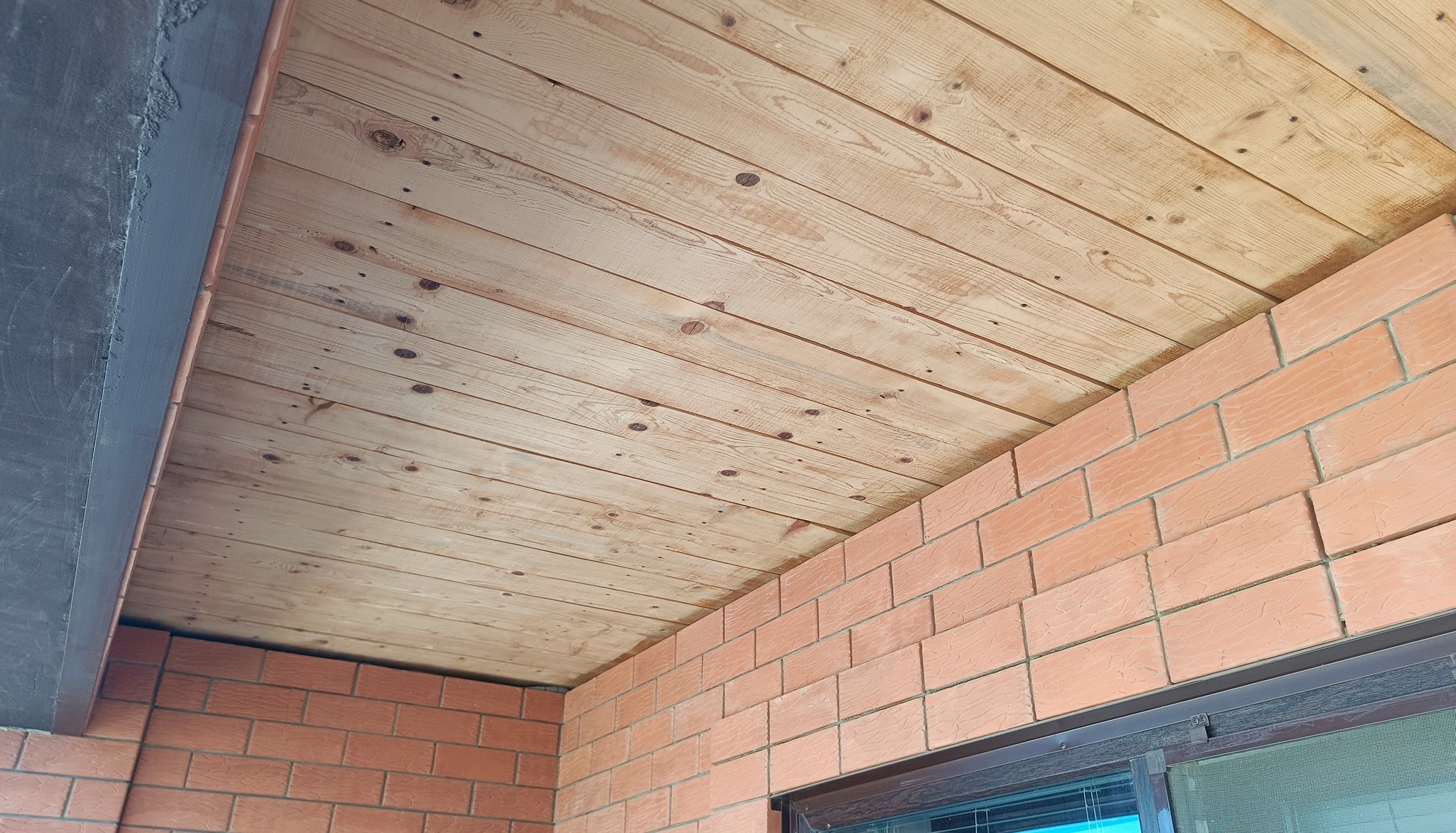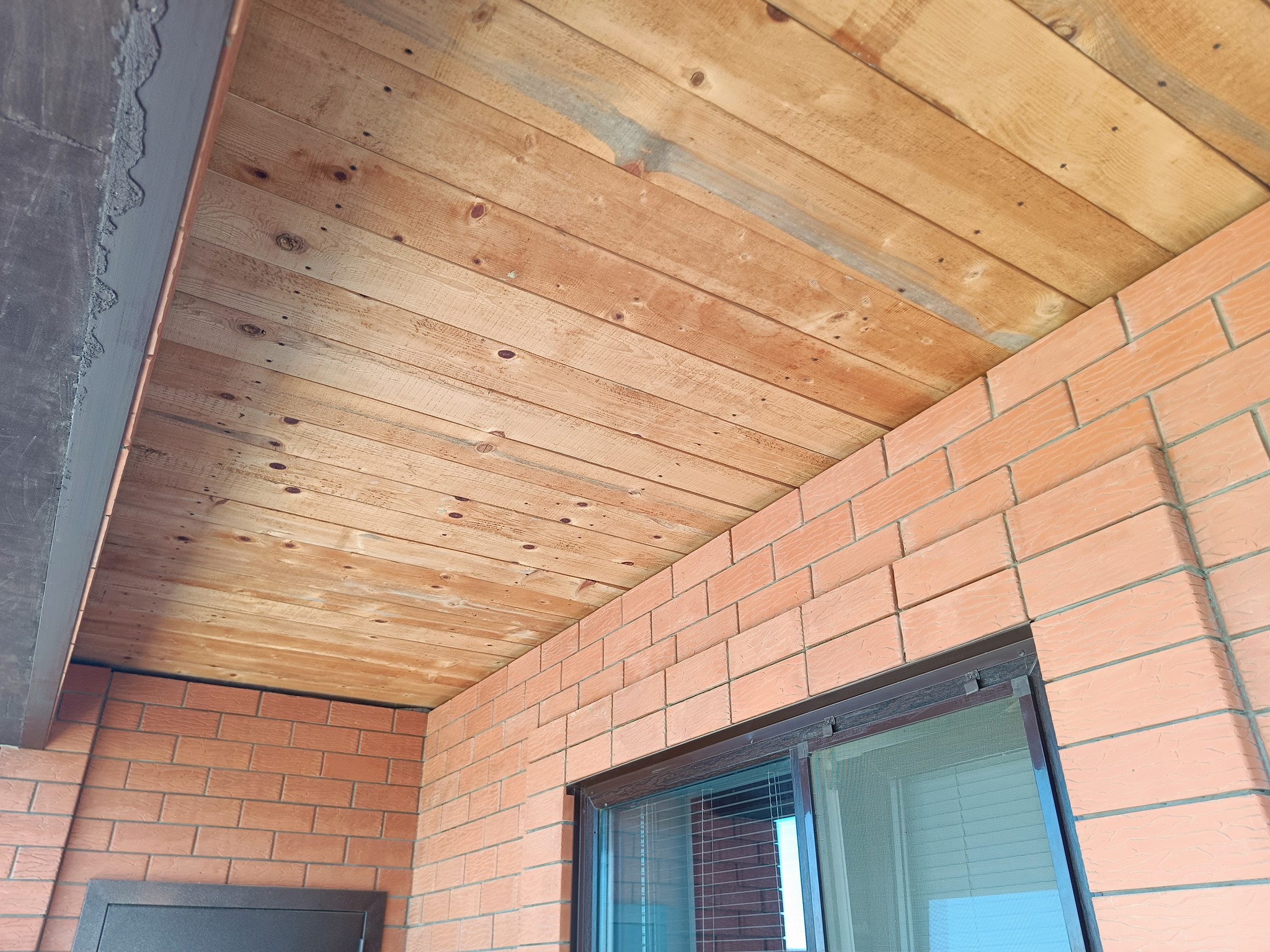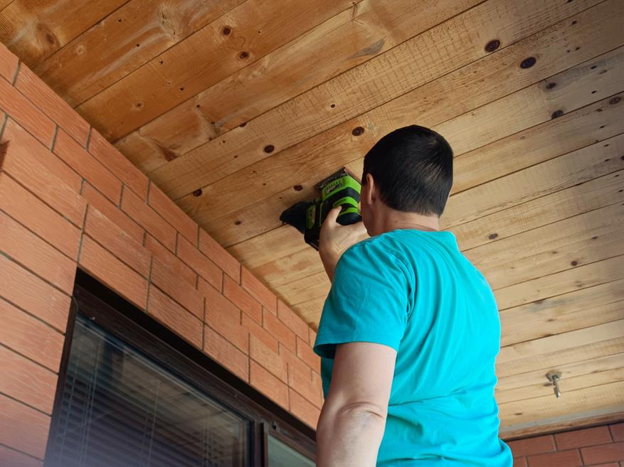 Второй, более масштабной задачей стала зачистка досок, подшитых под потолком балкона.