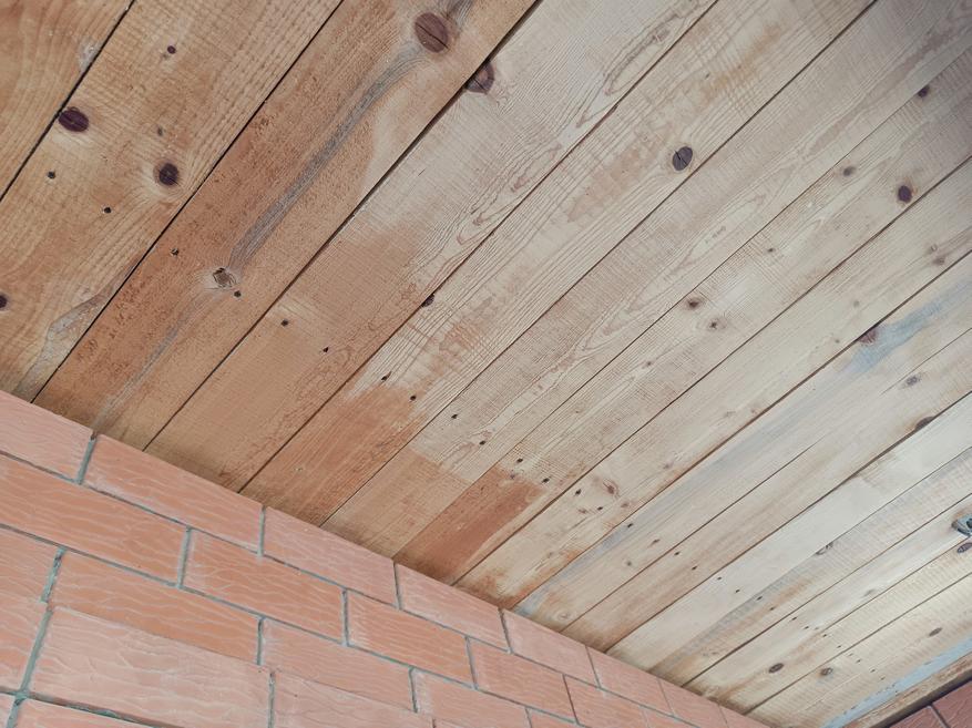 Изначально планировалось закрыть эту часть потолка декоративным покрытием, поэтому доски дополнительно не обрабатывались, но затем мне пришла в голову идея просто покрыть их маслом, а для этого, соответственно, теперь придется повозиться.