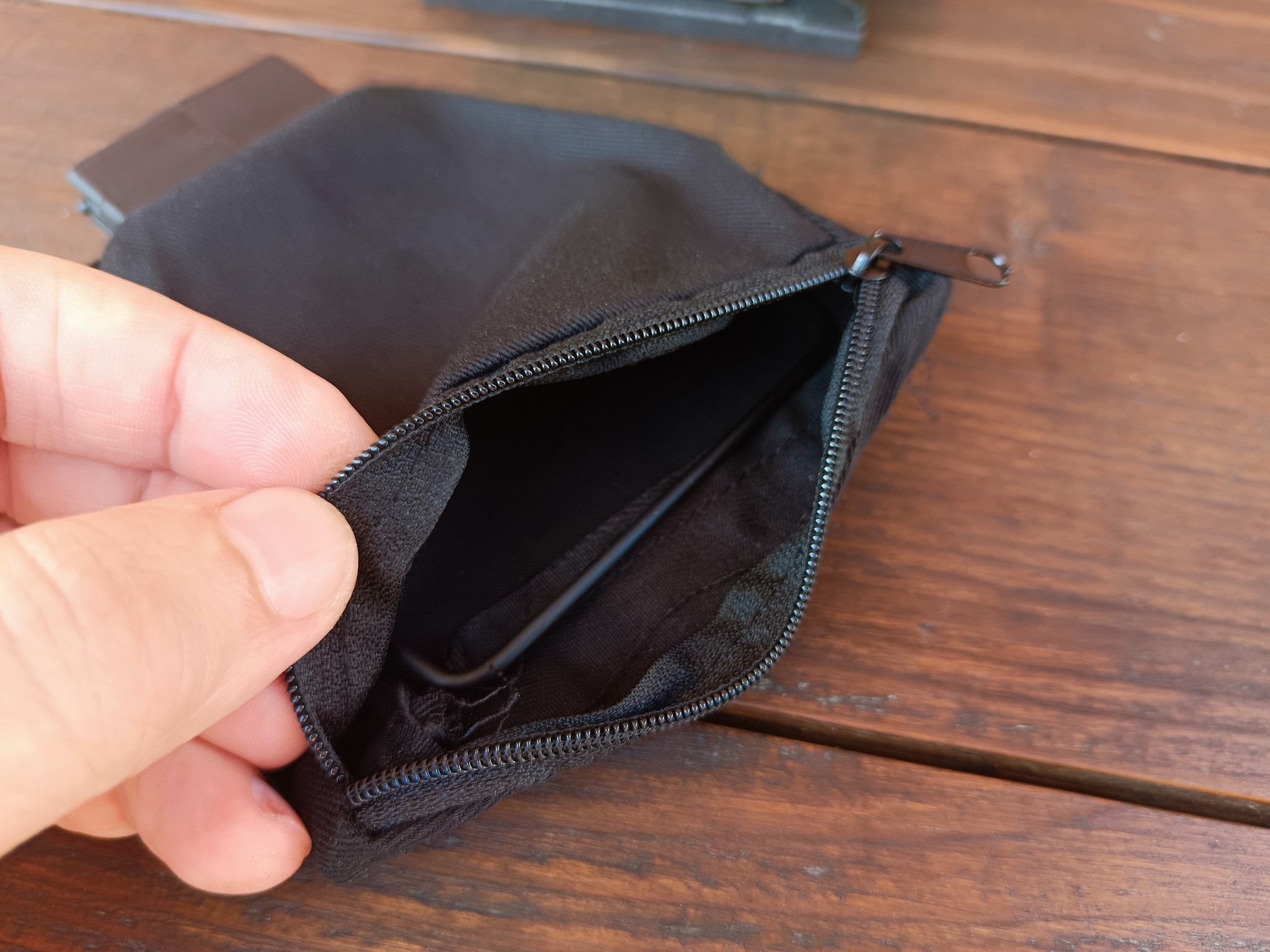 Внутри пылесборника находится своеобразный каркас из толстой проволоки, позволяющий удерживать мешочек в горизонтальном положении, а для вытряхивания пыли в задней части здесь предусмотрена молния.