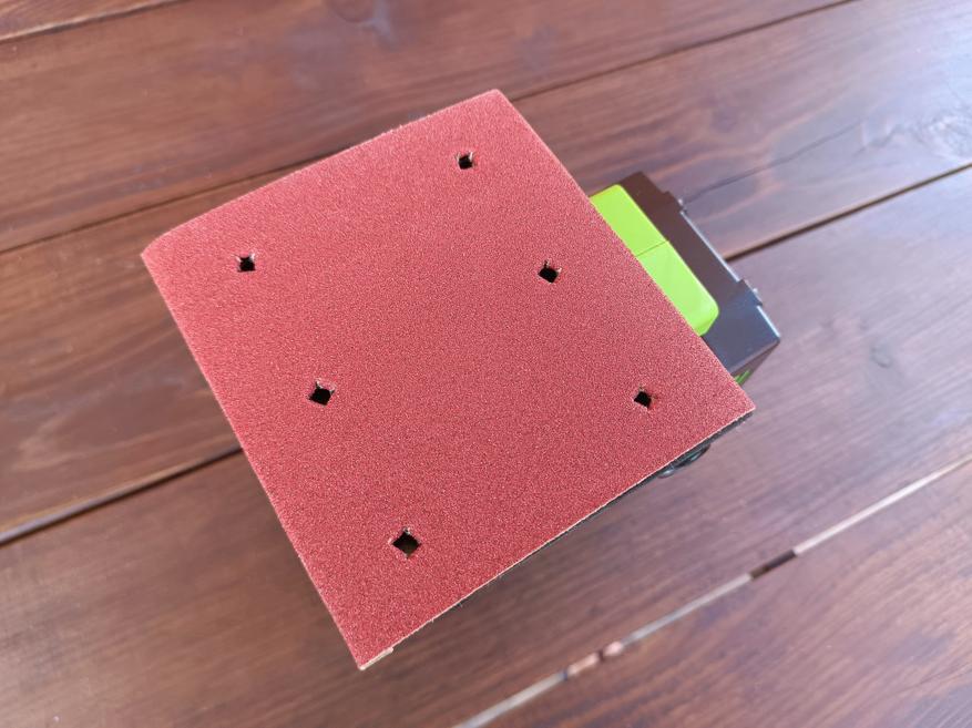 После установки аккумулятора и пылесборника, остаётся только закрепить наждачную бумагу.