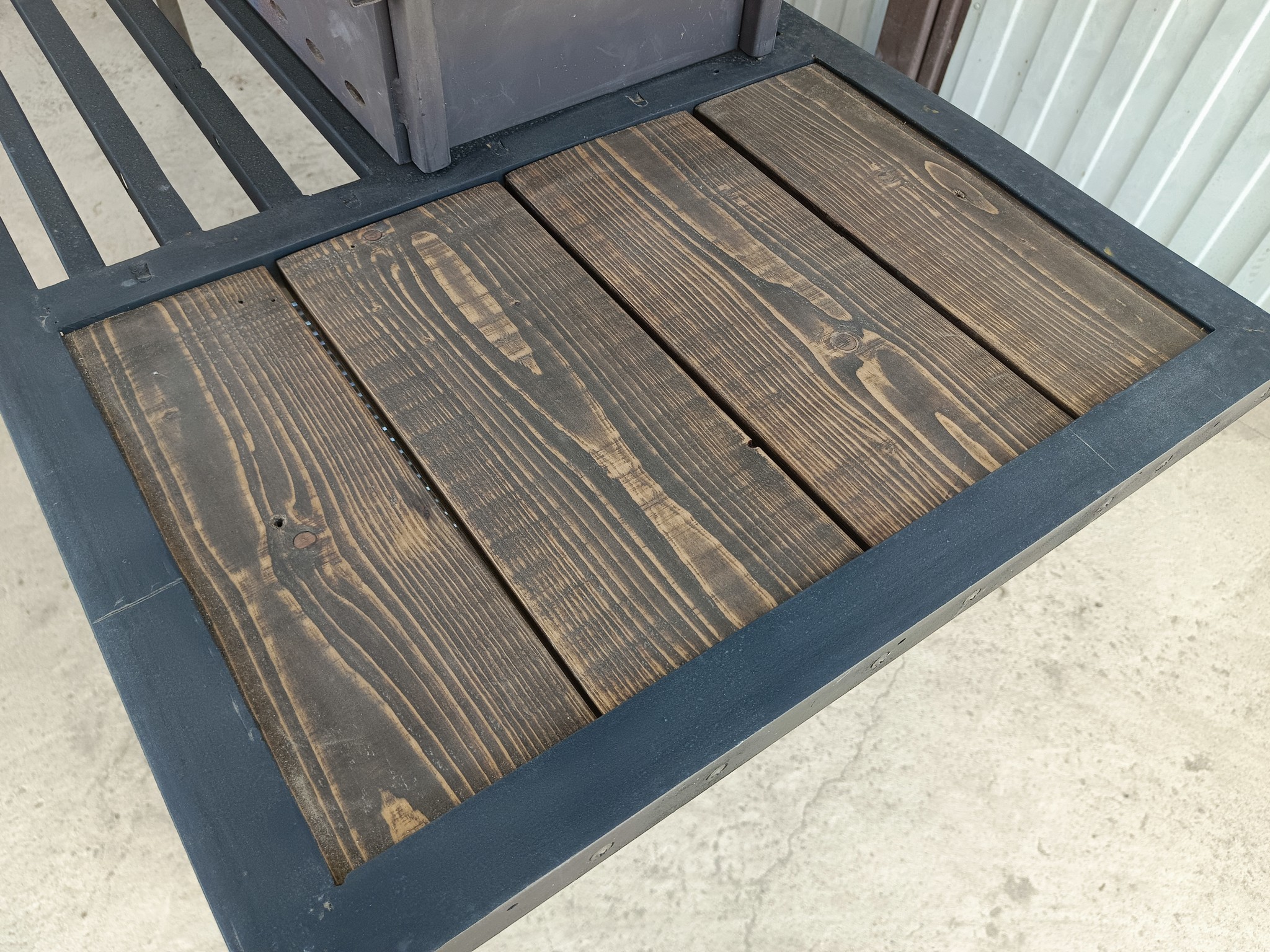 Впоследствии, после обработки, эти доски превратились в столешницу у небольшого мангала.