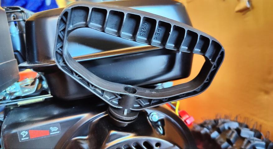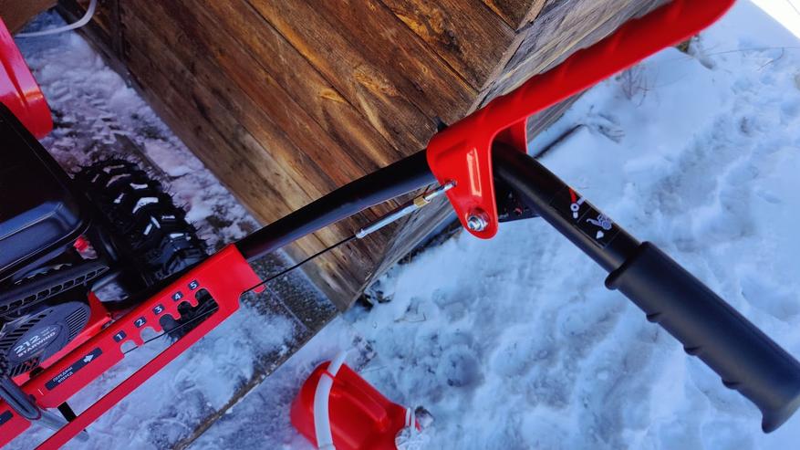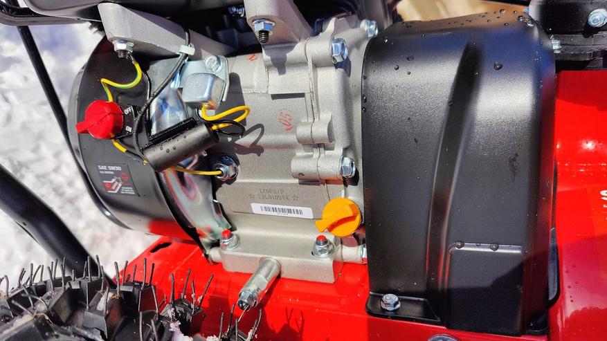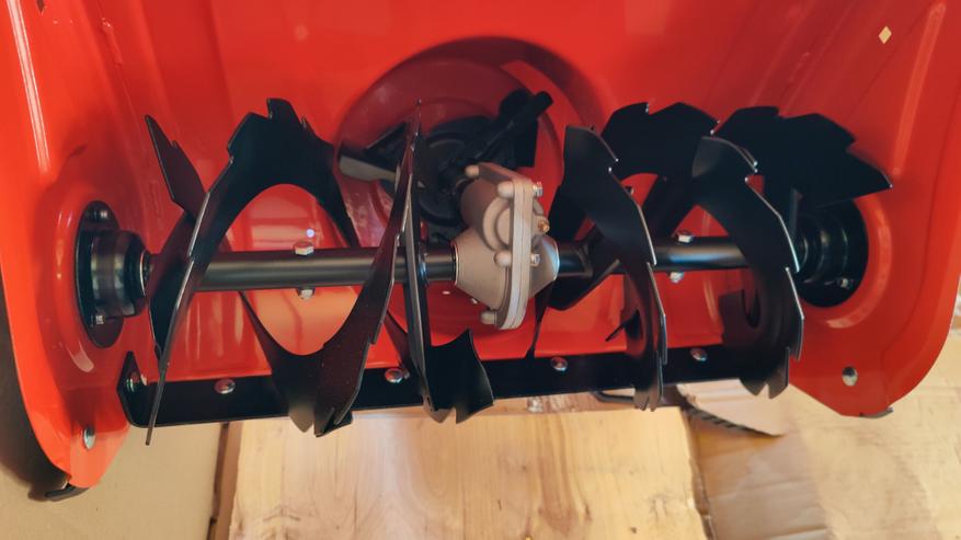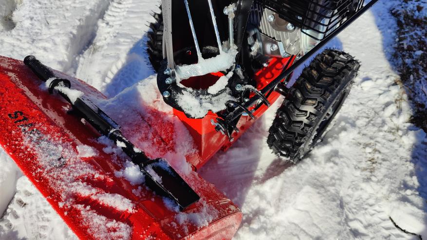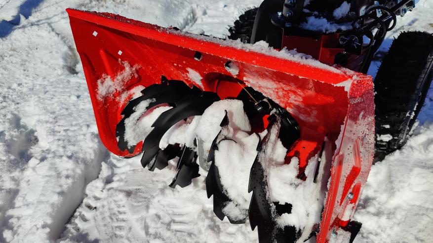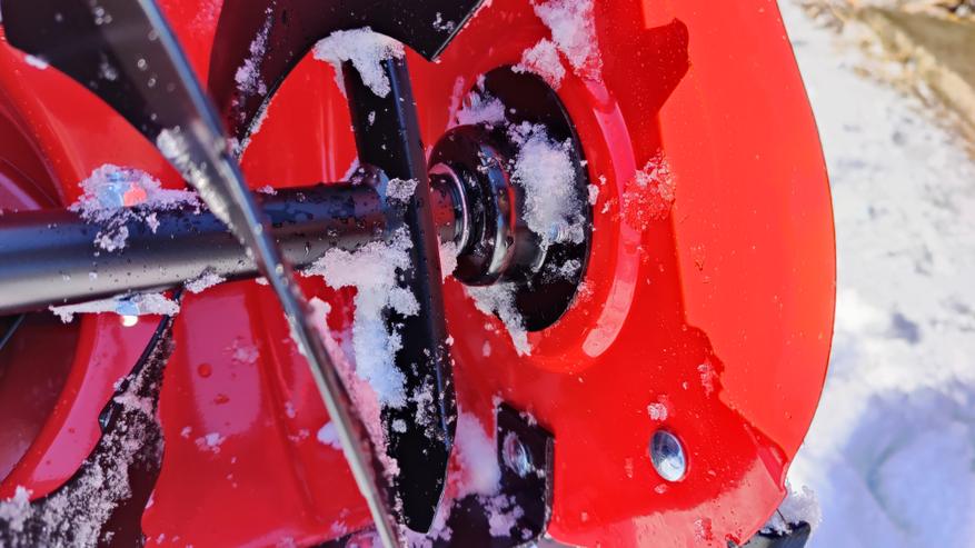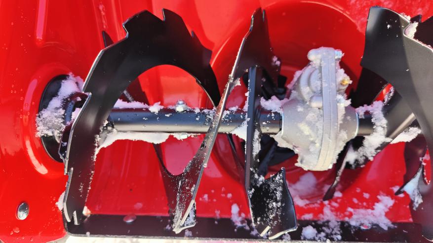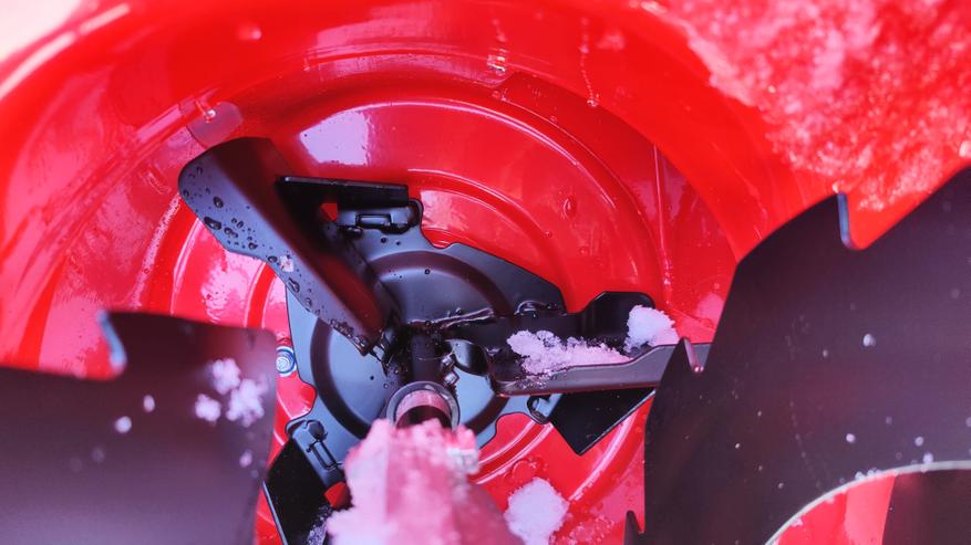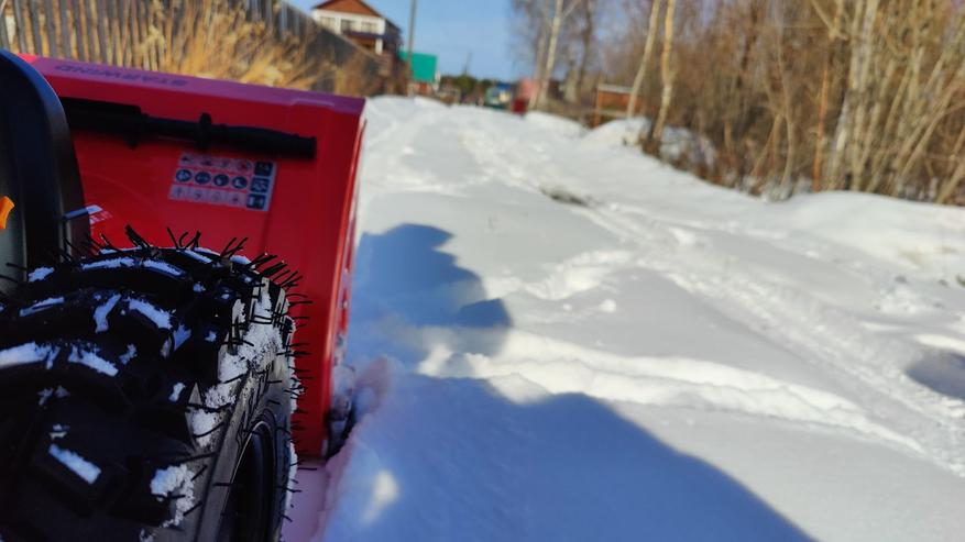 А еще заострю внимание на качественных деталях ковша и шнеков. Производитель выбрал толстый металл рабочих механизмов и снегоуборщик ощущается действительно как маленький трактор, нежели игрушка. И ему можно давать вполне взрослые нагрузки.