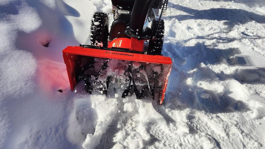 В итоге хочу сделать вывод, что бензиновый снегоуборщик Starwind GST-4356 является самым доступным вариантом среди подобных машин, но его возможности при этом удивляют. Он способен бороться с любым снегом, особенно если бывать с уборкой раз от раза, не допуская полного забрасывания участка. Большие сугробы свежевыпавшего снега высотой до 43 сантиметров он спокойно убирает, а также, как показала проверка в обзоре, справится и со слежавшимся снегом и с бруствером от коммунальной техники, правда тут нужно действовать не спеша и осмотрительно.