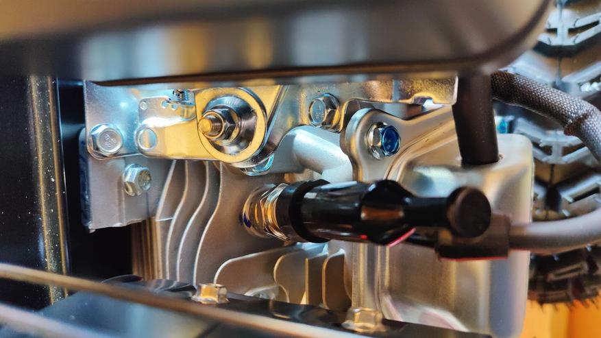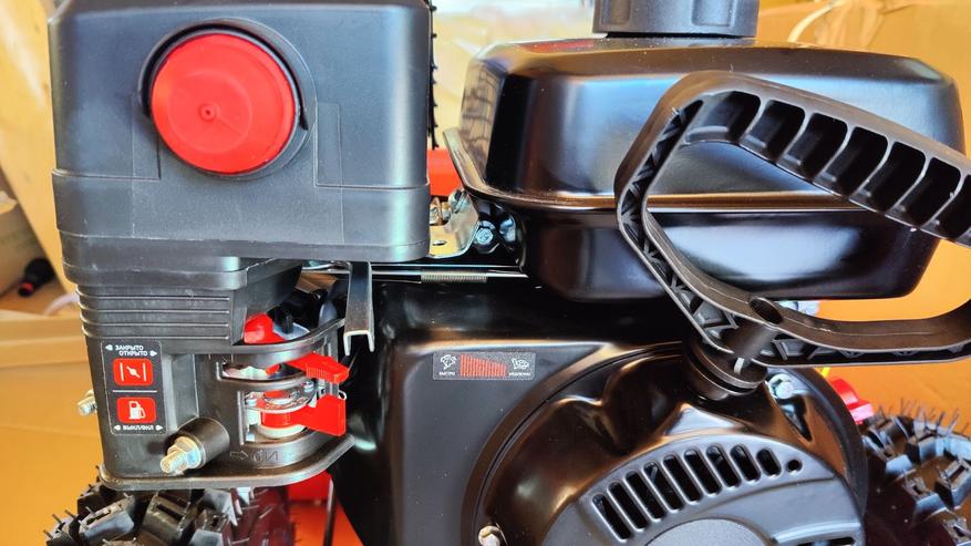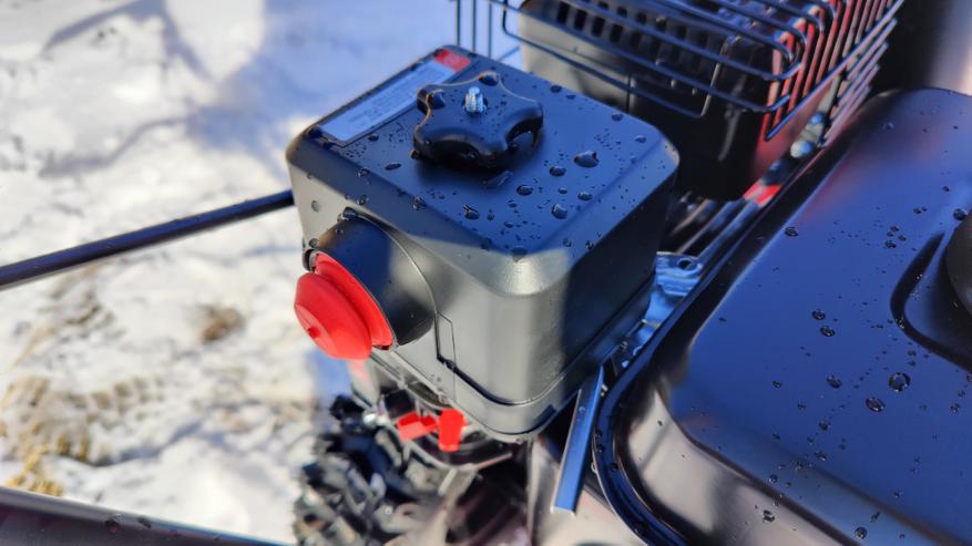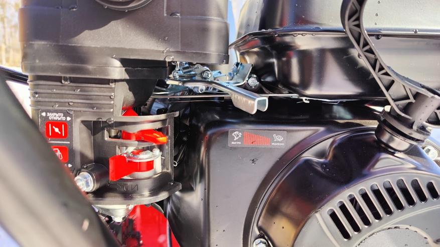 Управление положением воздушной заслонки и топливного тракта расположены прямо в зоне нахождения человека и пользоваться ими удобно. Они расположены сзади, ниже праймера ручной подкачки топлива. Положения подписаны и гадать не придется.