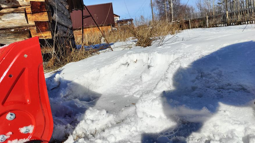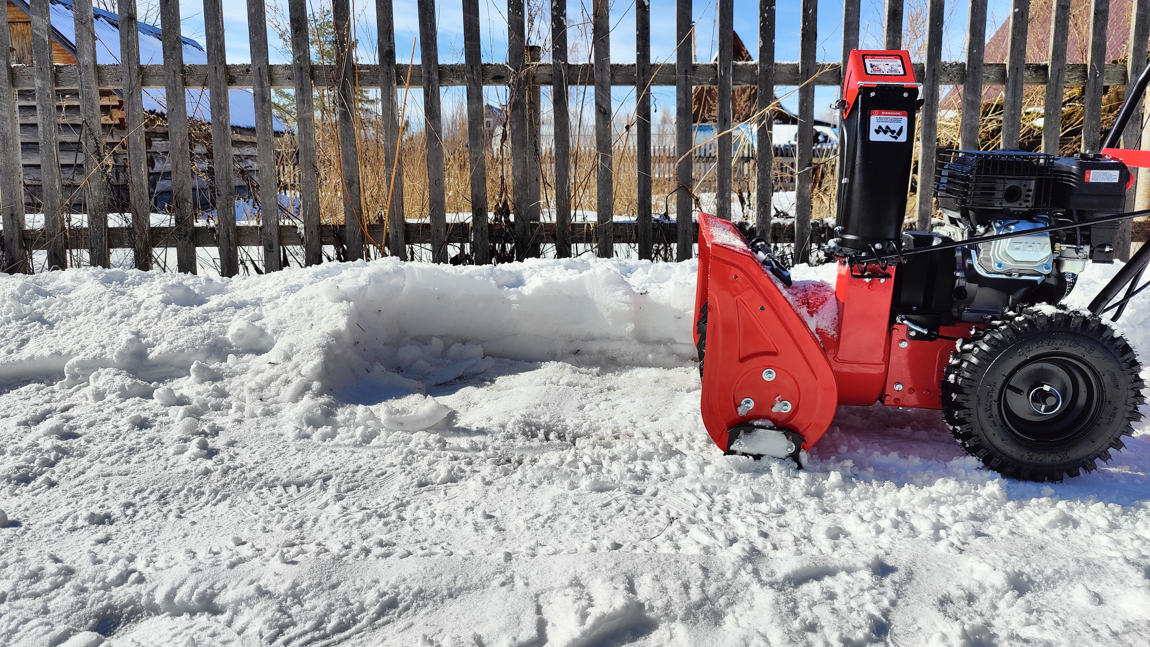 Сейчас количество снега пошло на убыль, что удивительно для нашего региона. Обычно весь март еще очень морозный и снежный, а апрель еще достаточно “радует” метелями. Так вот это отличный шанс проверить, каков снегоуборщик не только по легкому свежевыпавшему снежку, а еще и по утрамбованному слегка подтаявшему и снова замершему снегу.