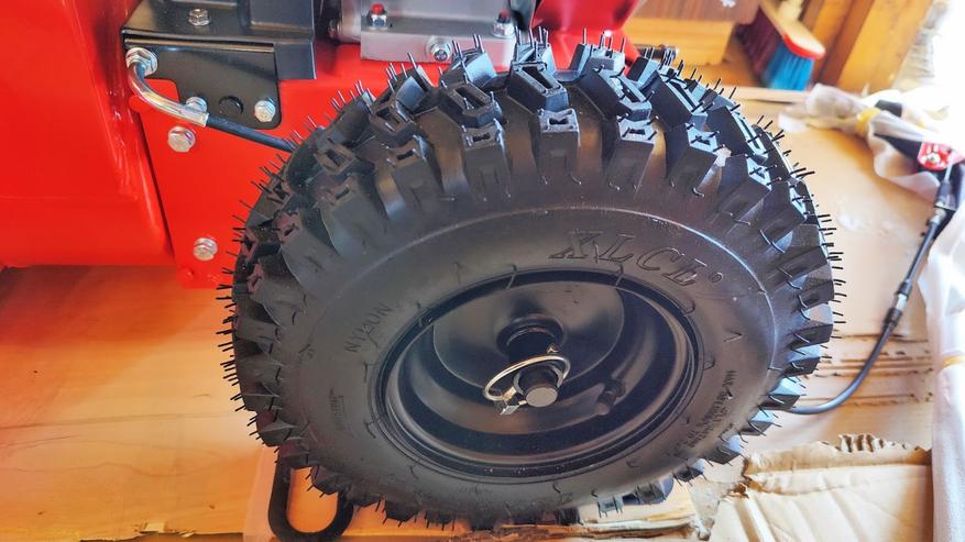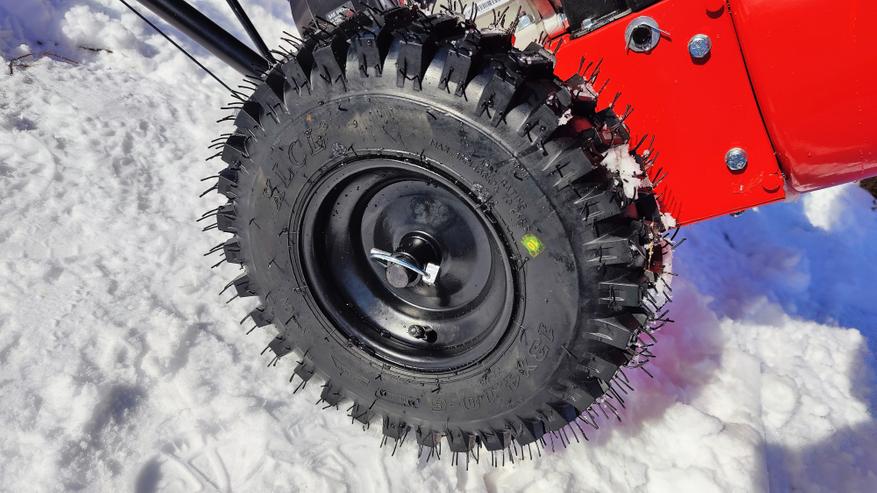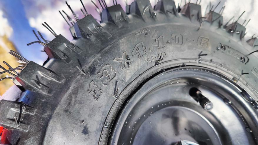 Колеса с шипастым протектором, зафиксированы на валу стопорами. Параметры колеса нанесены на резиновой покрышке