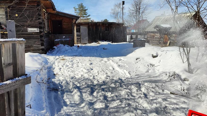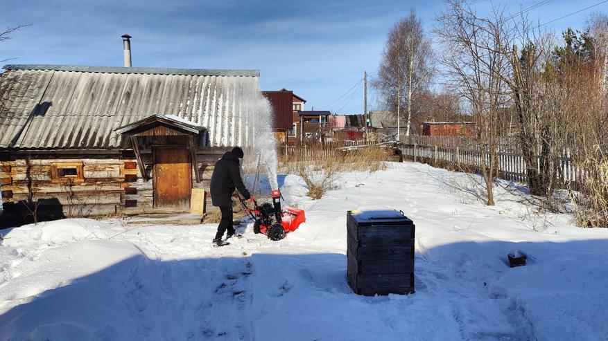 Переходим к участку, там поверхность менее ровная, что является отличной проверкой удобности эксплуатации снегоуборщика.