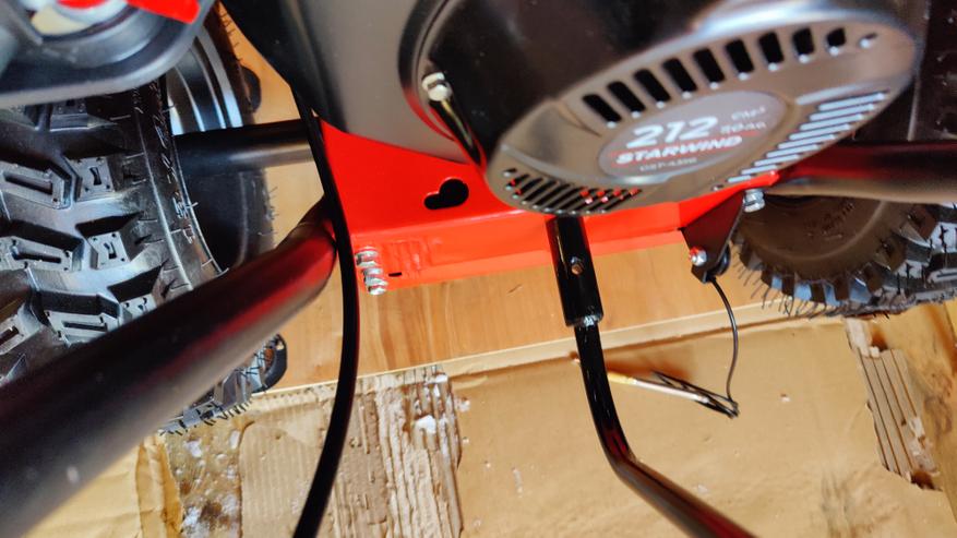 Далее очередь панели управления, ее нужно прикрутить перпендикулярно рукояткам. Рычаг переключения передач из толстого металла уже вставлен в панель