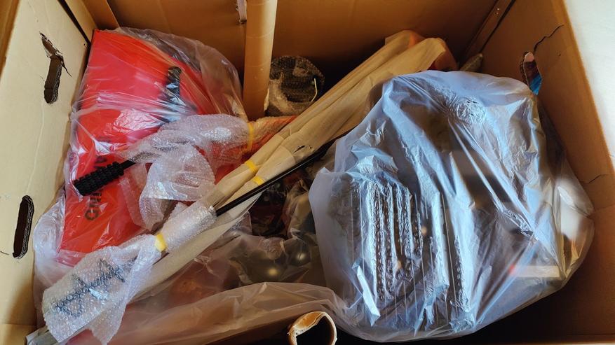 Открываем коробку и видим, что все части комплектация и сама машина покрыта полиэтиленовыми пакетами и упаковкой из вспененного полиэтилена, дабы сохранить внешний вид машины до приезда к покупателю.
