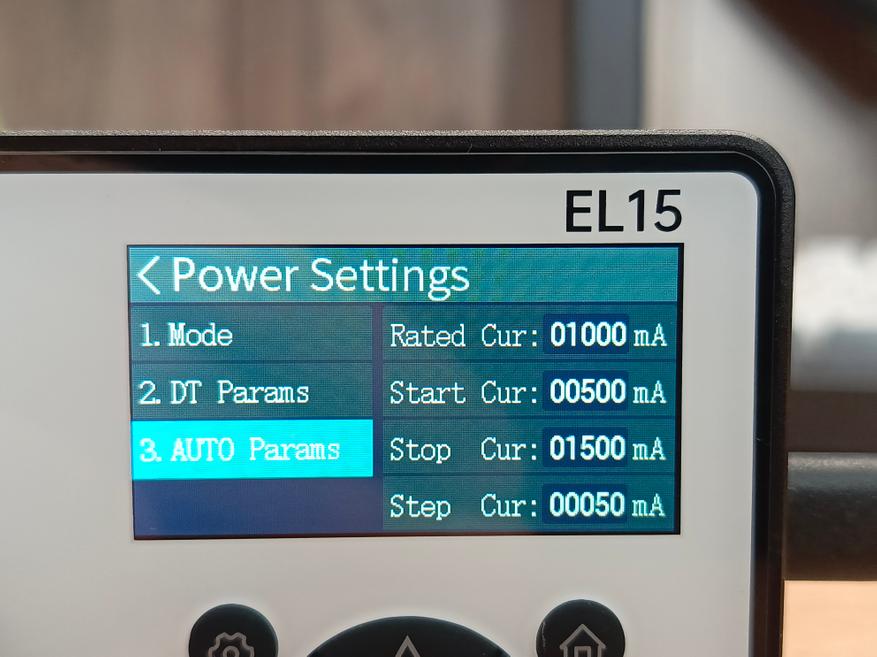 В каждом режиме предусмотрено дополнительное подменю, открывающее доступ к расширенным настройкам. В целом набор параметров типичный: можно задать ток, мощность, сопротивление и время работы. Такие подменю присутствуют во всех режимах, а количество доступных настроек достаточно велико, поэтому при необходимости с ними можно подробно ознакомиться самостоятельно.