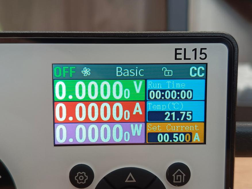 Режим Basic является самым простым — в нём задаётся только значение тока нагрузки. При этом на дисплее отображаются основные параметры: напряжение, ток, потребляемая мощность, температура устройства и общее время работы.