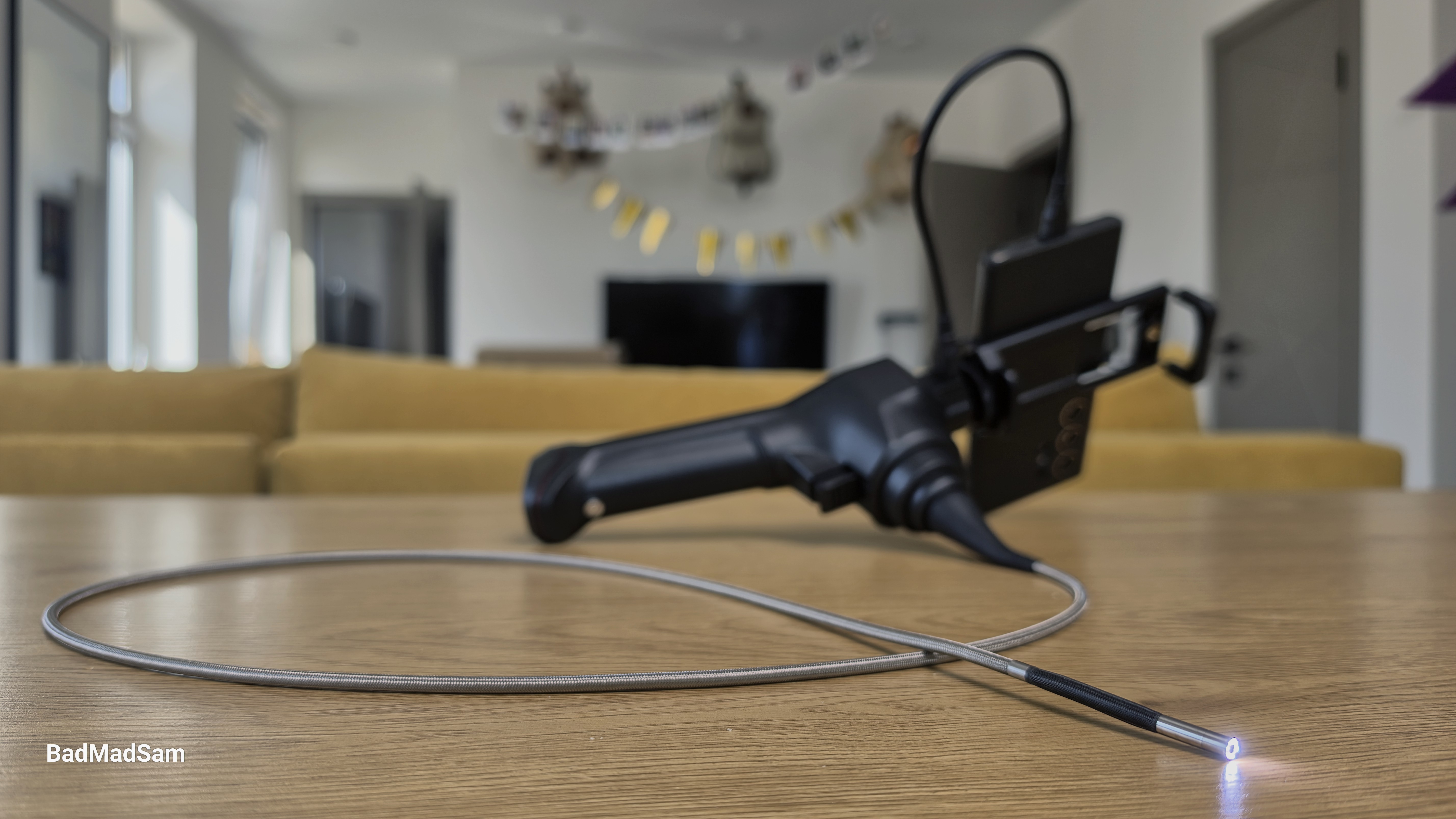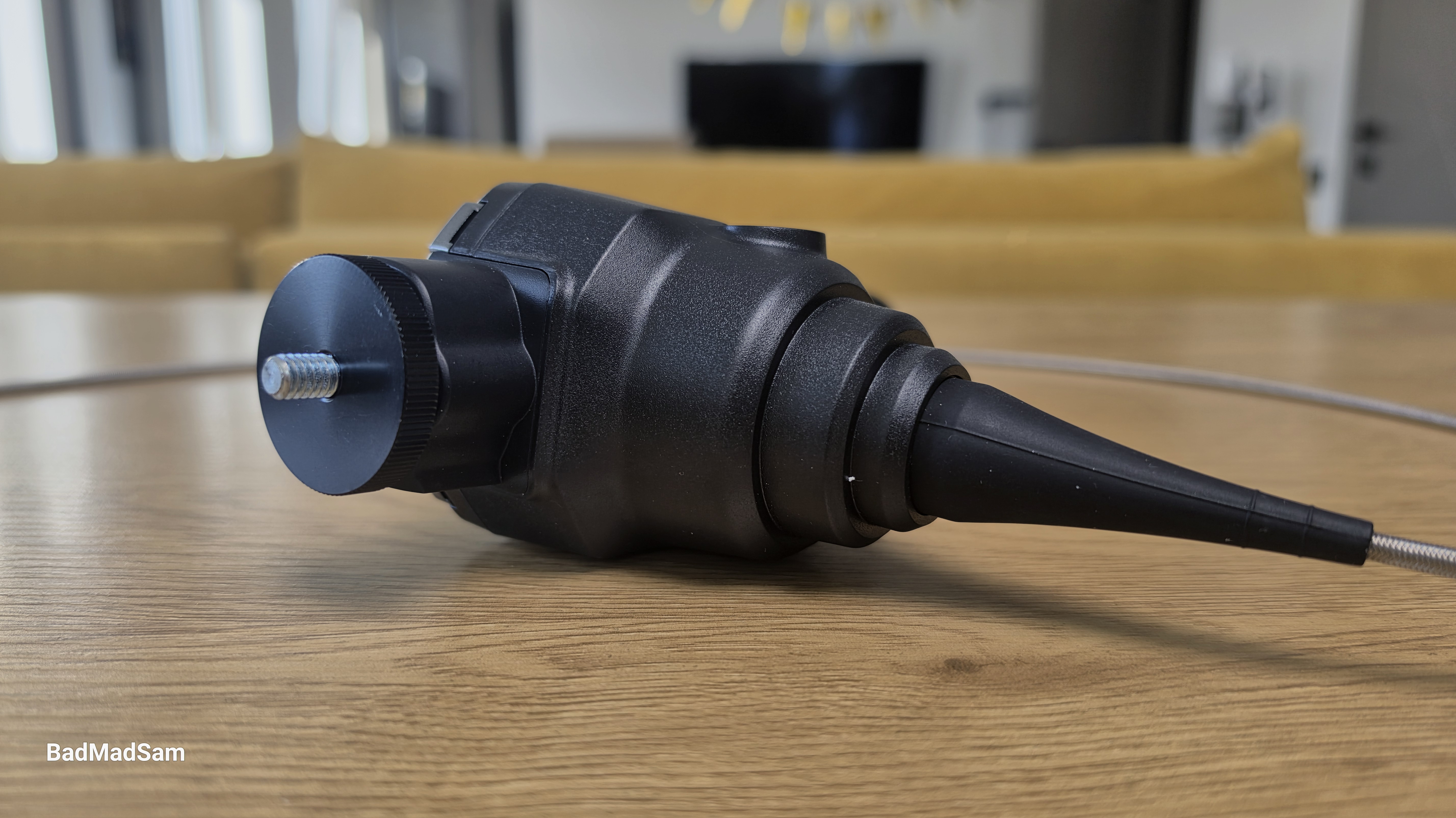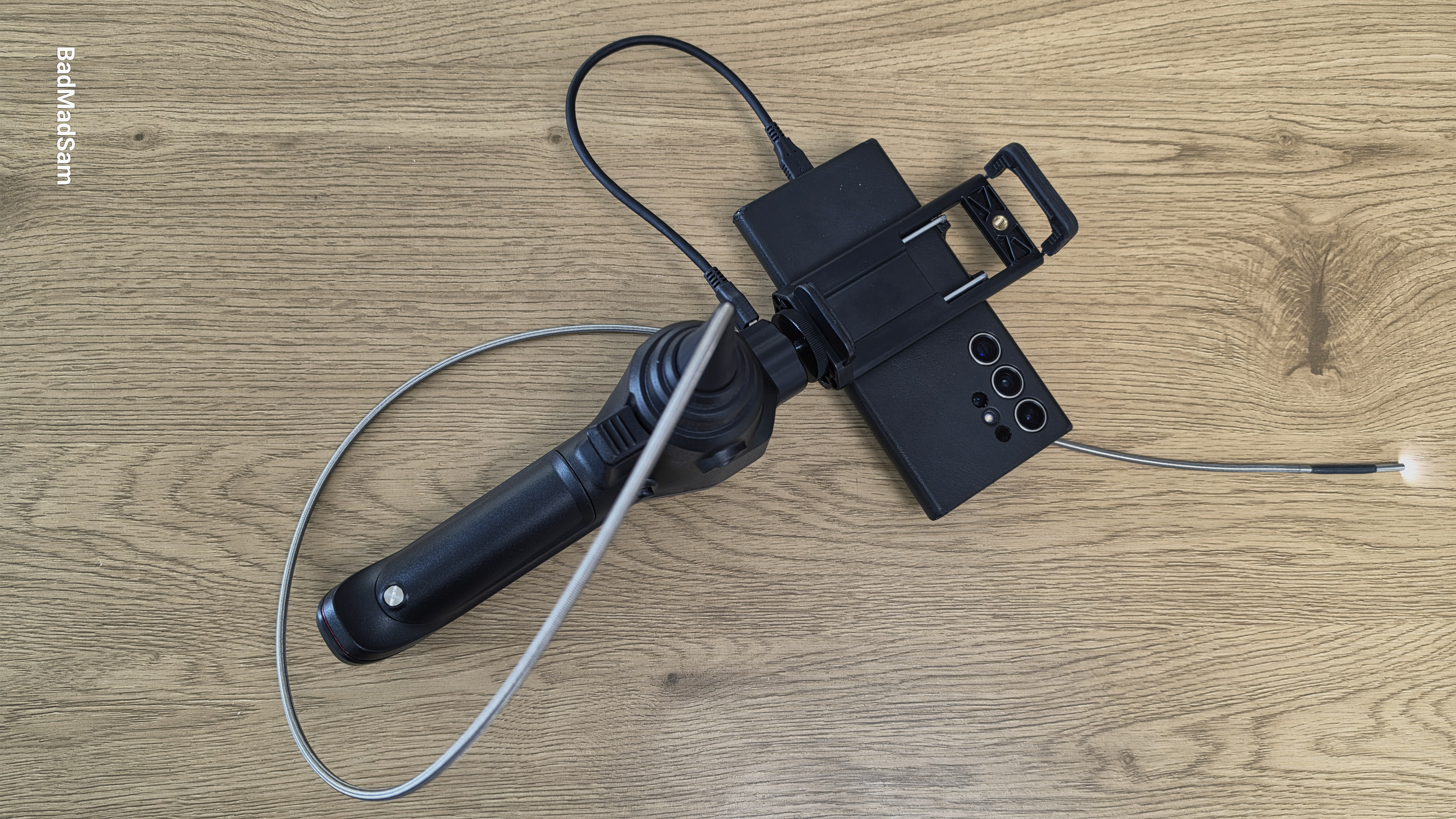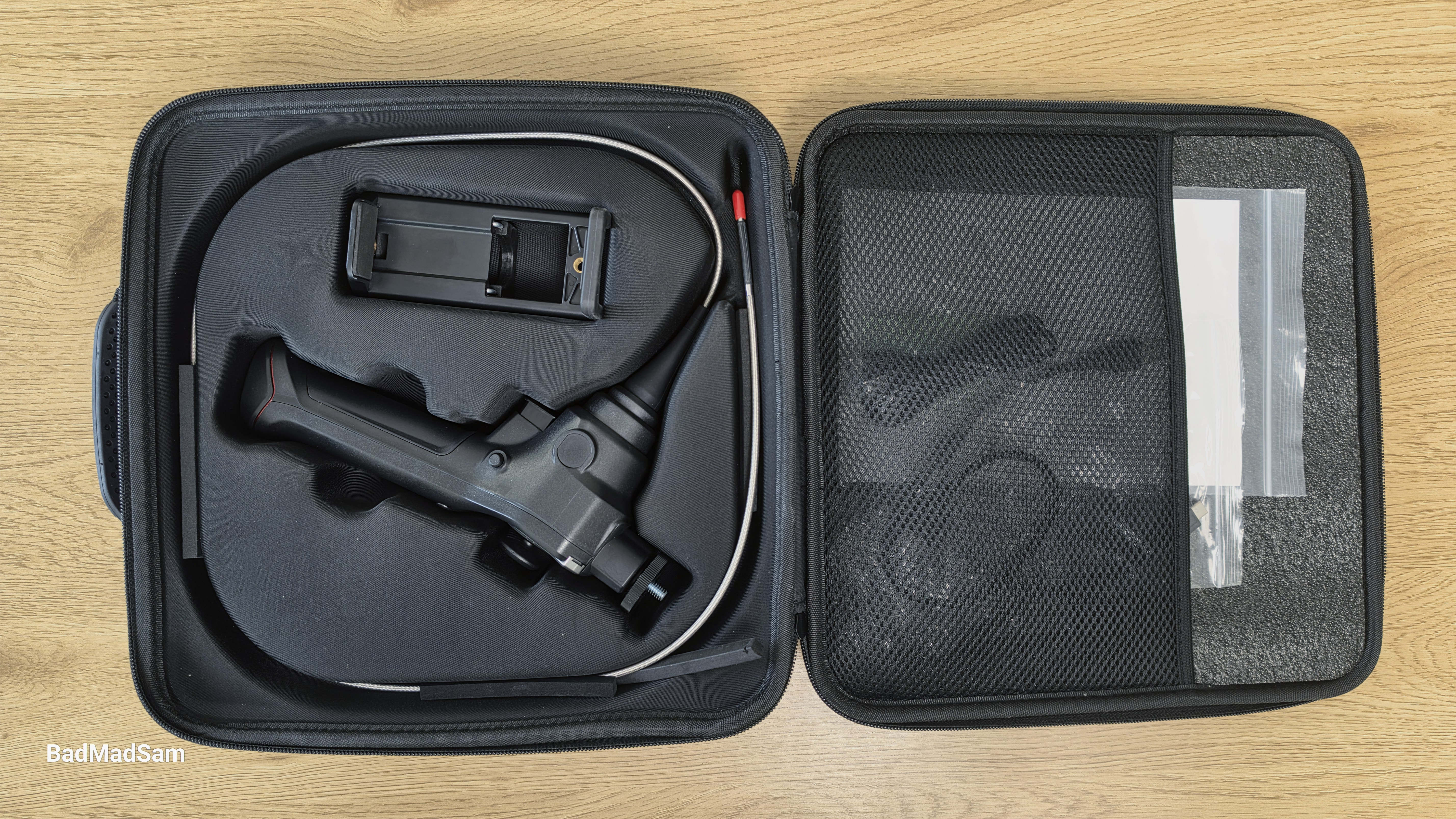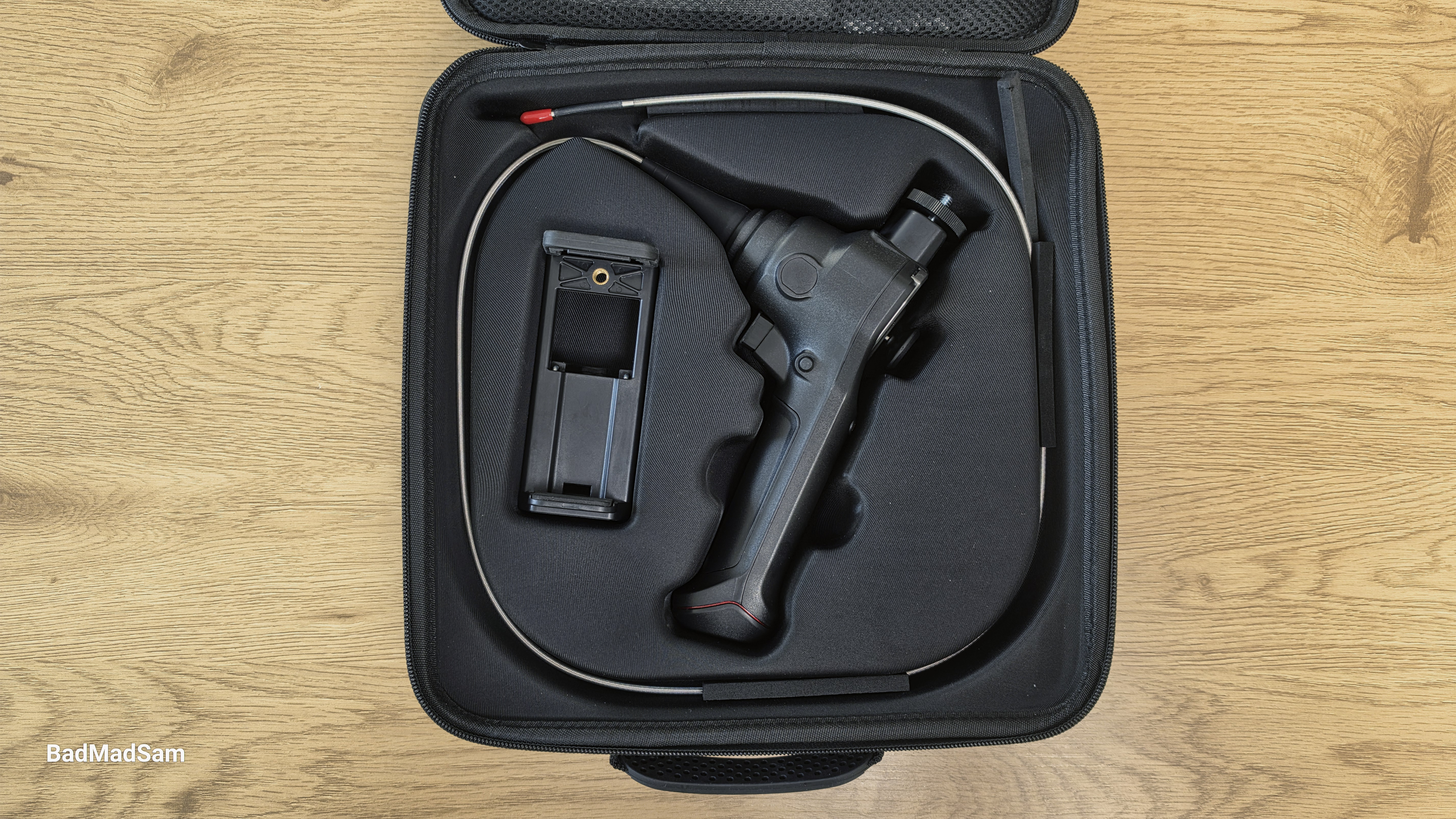 Гибкий зонд имеет длину примерно один метр. Производитель указывает, что внешняя оплетка основной части выполнена из нержавеющей стали. Подвижная дистальная часть дополнительно усилена вольфрамовой оплеткой. Такая конструкция рассчитана на работу в условиях постоянного трения о поверхности и изгибов при осмотре различных полостей. Камера и гибкая часть зонда имеют степень защиты IP67, что означает защиту от пыли и устойчивость к воздействию влаги при кратковременном контакте с водой.