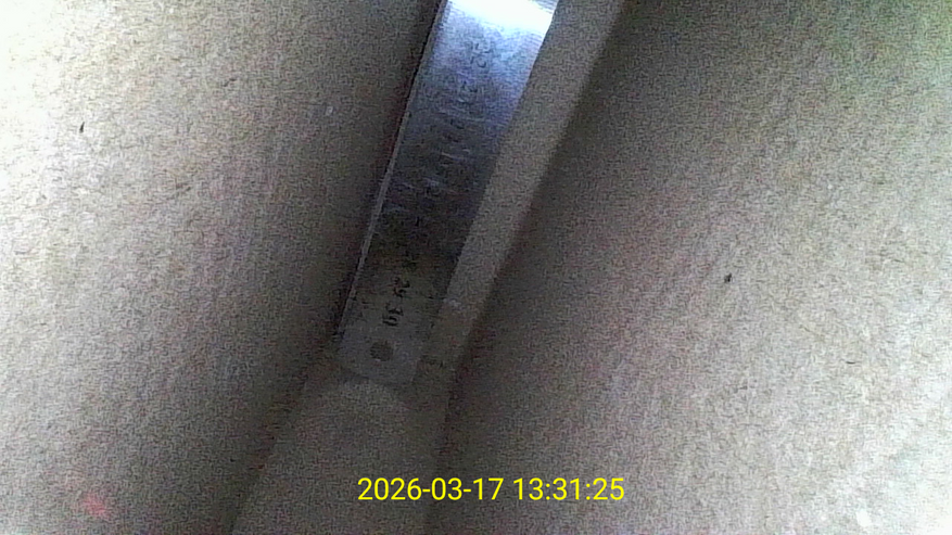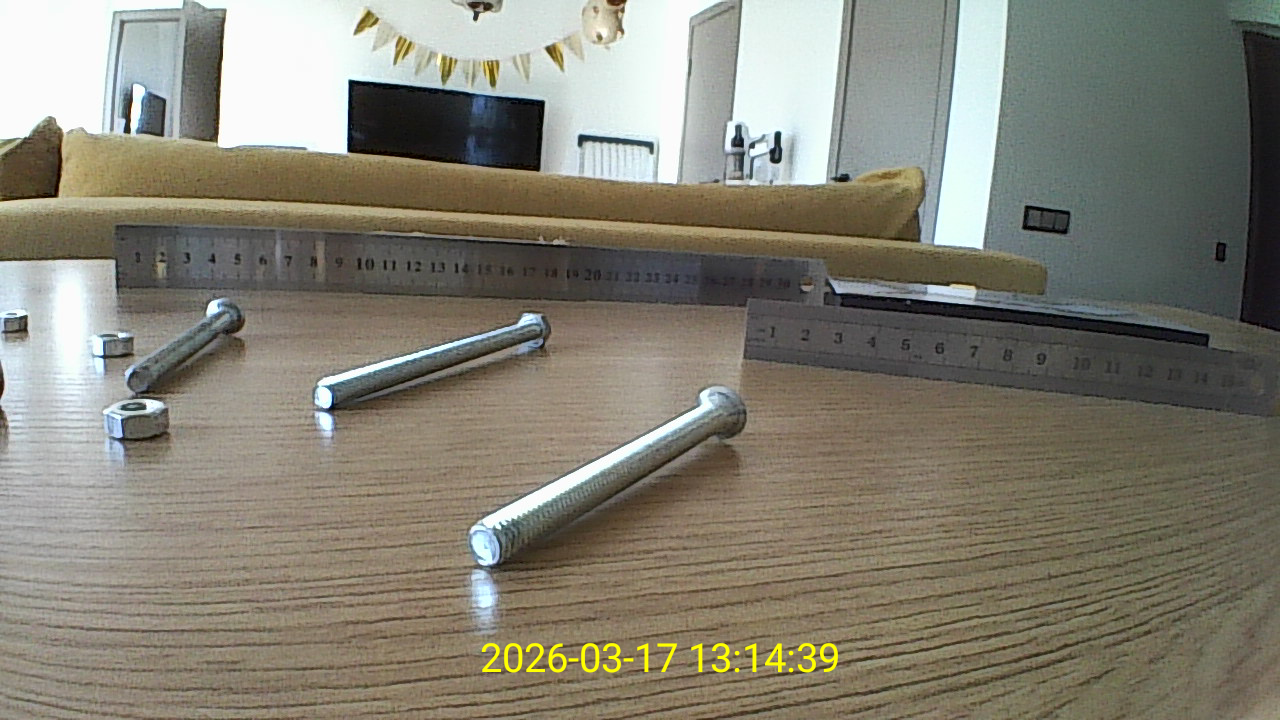 Далее я провел тест глубины резкости. На столе разместил две линейки на разном удалении от камеры, а также добавил несколько металлических элементов — гайки и болты. Все объекты находились на расстоянии более 100 мм от объектива. В таких условиях изображение остается читаемым, можно различить расположение объектов и общую форму, шкалу на линейках, однако заметно, что резкости уже не хватает для уверенной детализации. Если присматриваться, мелкие элементы начинают терять четкость, особенно на дальнем плане. Скорее всего, это связано не только с рабочим диапазоном фокусировки, но и с разрешением камеры в 1 мегапиксель. При таком удалении детализация закономерно снижается, и это становится заметно именно на мелких объектах и шкале линейки. При этом важно учитывать, что подобный сценарий сложно назвать типичным для такого устройства. Видеоэндоскоп рассчитан на работу на близком расстоянии, где требуется рассматривать поверхность или конкретные элементы. Осмотр на дистанции свыше 100 мм скорее носит вспомогательный характер, и в реальных задачах необходимость получать максимально четкое изображение на таком удалении возникает редко.