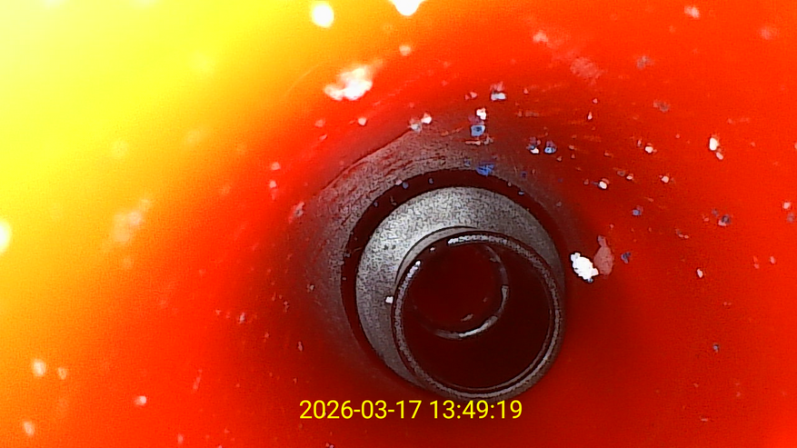 Для проверки фиксации положения камеры я задал определенный угол наклона с помощью джойстика и оставил зонд в этом положении без движения. В процессе наблюдения камера сохраняла заданное положение, без заметного сползания или возврата в исходное состояние. Это важно при работе в ограниченном пространстве, когда требуется зафиксировать взгляд на конкретном участке и спокойно его рассмотреть, да, сам шланг тоже двигается и картинка немного смещается, но это не критично, главное зафиксировать голову. Если бы камера постепенно меняла угол, это усложнило бы работу и потребовало постоянной корректировки положения.