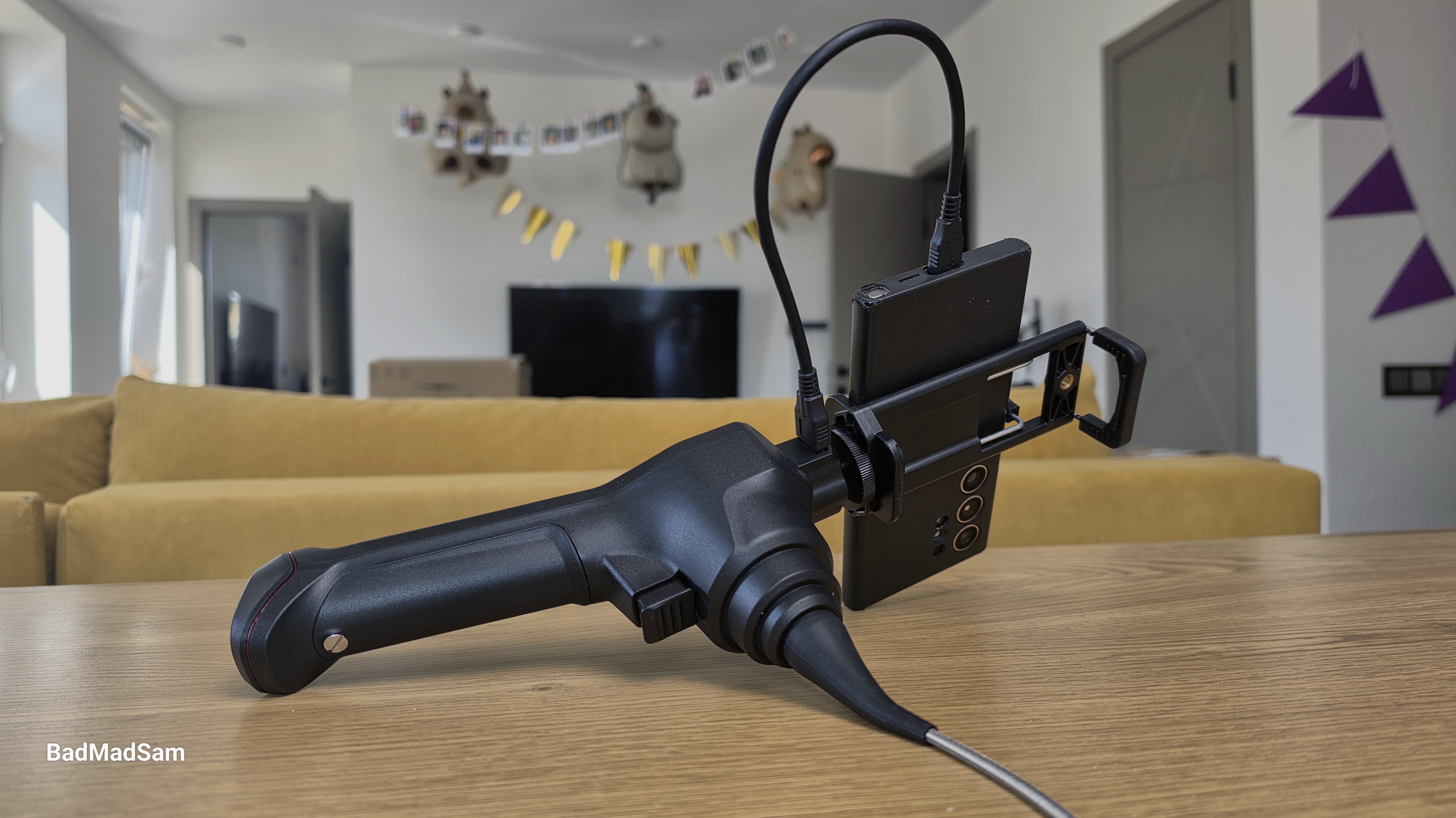 Еще один момент получился довольно наглядным. Сын попросил посмотреть, что находится внутри игрушечного орбиз-бластера. Ввел туда эндоскоп и уже по ходу движения стало видно, что внутри не просто ровный канал, а ступенчатый цилиндр с постепенным уменьшением диаметра. За счет подвижной головы удалось без лишних попыток пройти эти переходы. Камеру можно было направлять в нужную сторону, аккуратно перешагивать ступени и двигаться дальше, не застревая и не теряя ориентацию. В итоге получилось дойти до самого основания и полностью осмотреть канал, не вытаскивая зонд и не пытаясь заново попасть в нужное направление.