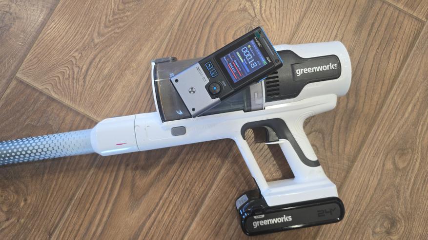 С пылесосом ситуация вышла нагляднее. Я поднес GC-03 к мотору, и сразу стало видно, как растет фон: электрическое поле показало 45 V/m, а магнитное — 0.62 µT. Прибор исправно зафиксировал скачок, но, как и в других случаях, отреагировал только графикой на экране.