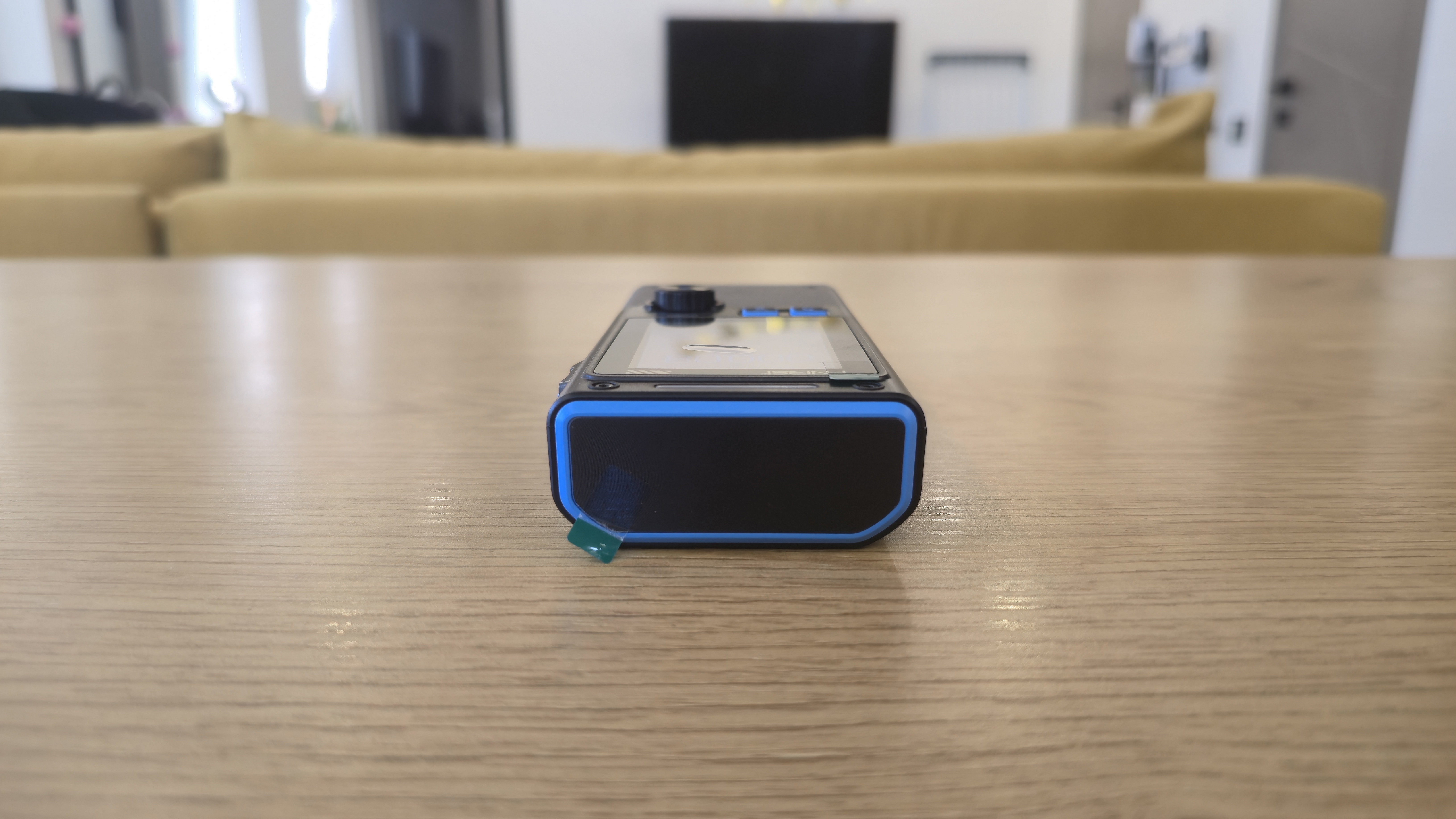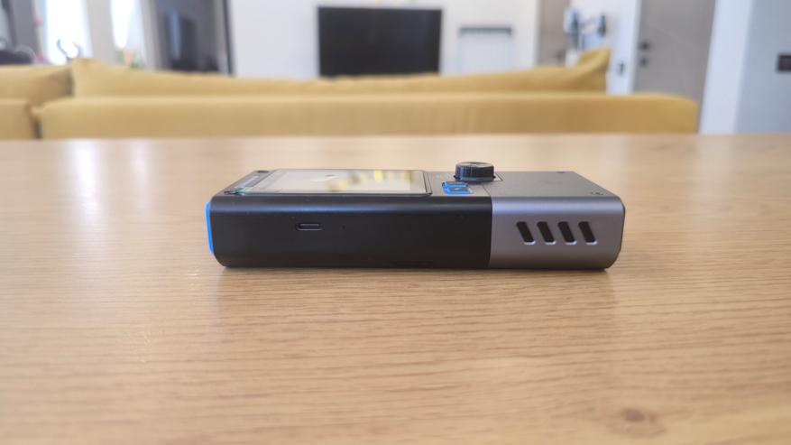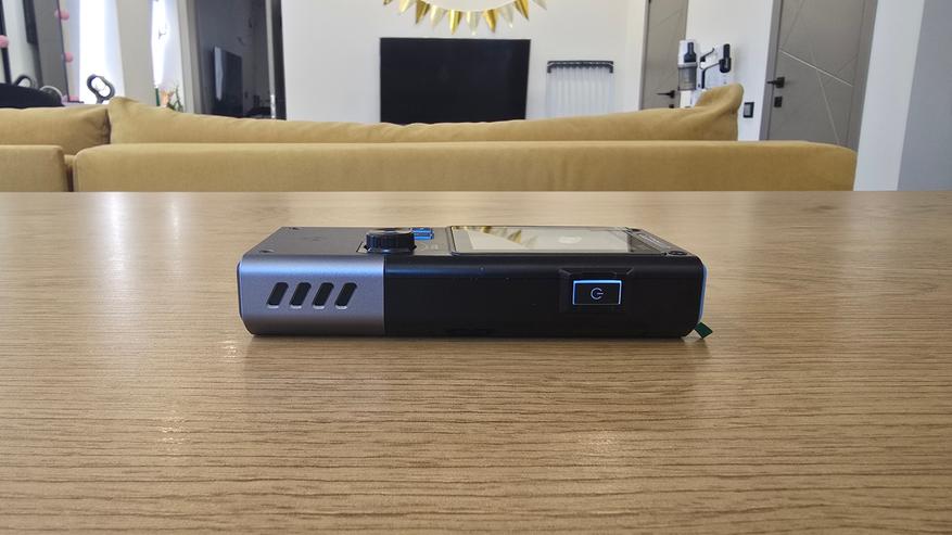 Правая грань содержит кнопку включения, выделенную цветной окантовкой. На левой стороне корпуса находится разъем USB Type-C для зарядки и обновления прошивки. Рядом можно заметить маленькое отверстие кнопки сброса.
