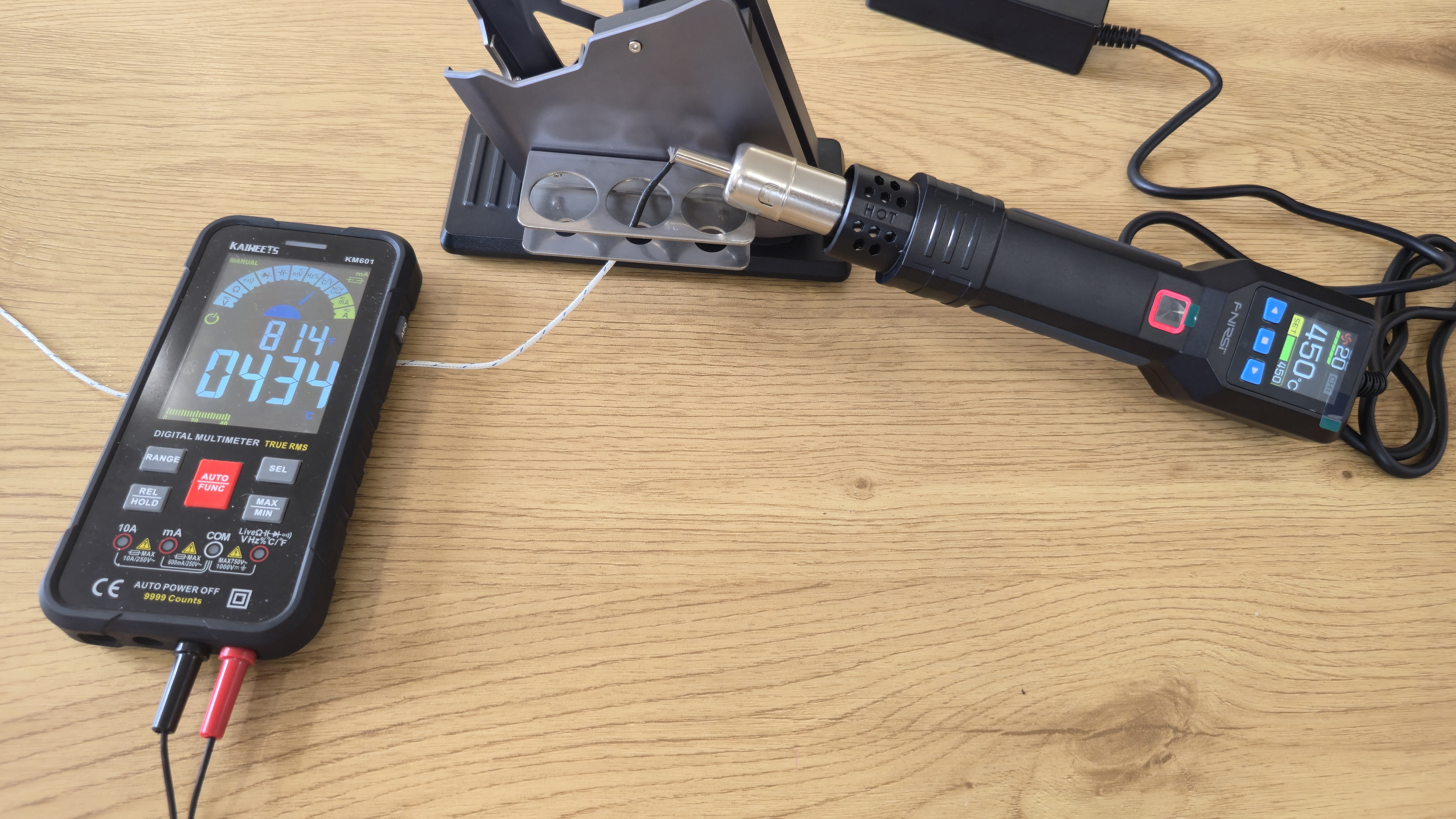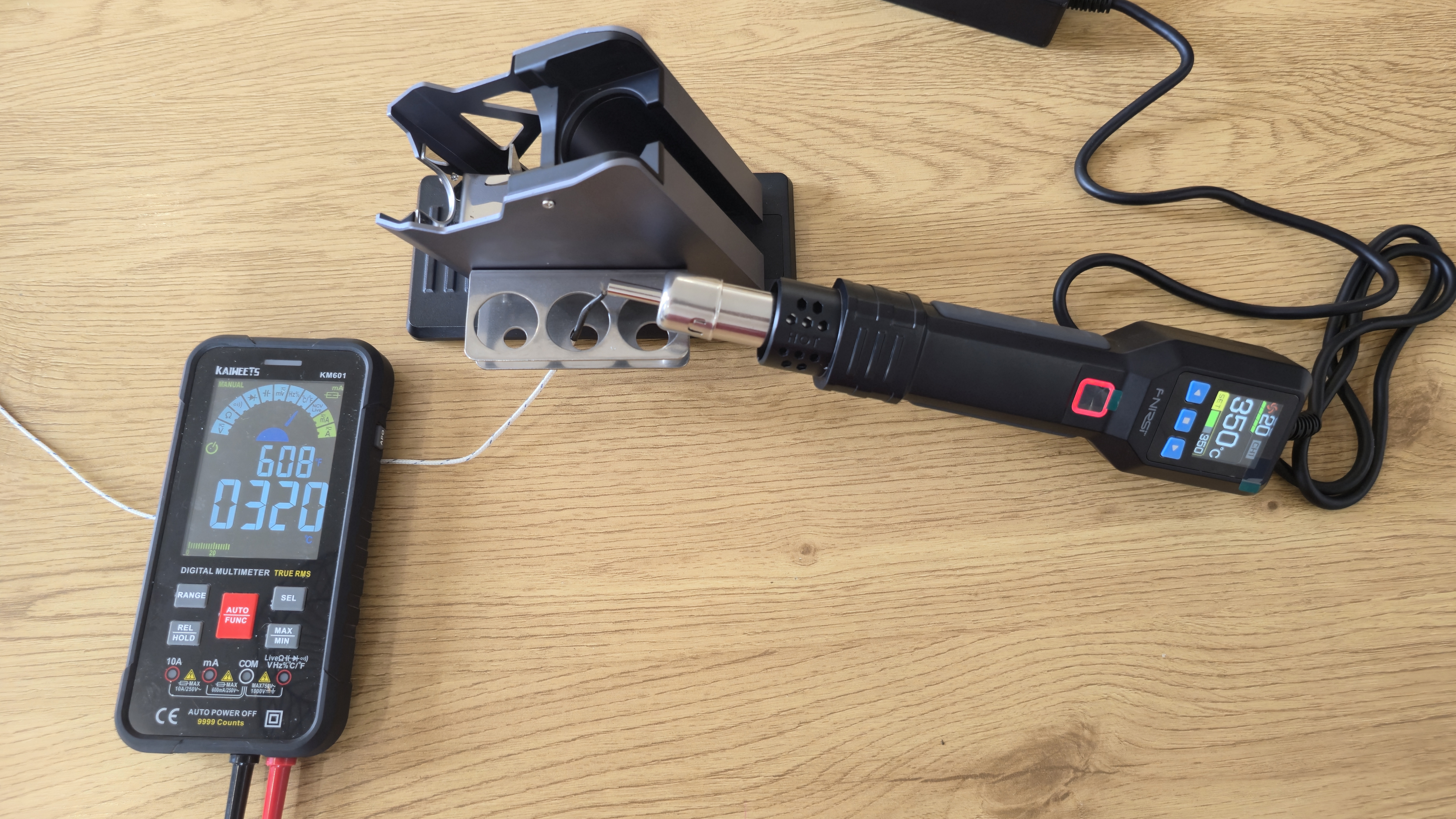 После проведенных тестов стало понятнее, чего ждать от Fnirsi SAG-55 в реальной работе. Температурный режим оказался достаточно точным: при выставленных 300, 350 и 450 °C реальная температура держалась в диапазоне от 274 до 435 °C. Небольшие расхождения с заявленными значениями укладываются в норму и не мешают работать с платами или термоусадкой. Главное, что нагрев идет стабильно и не «плавает» во время длительного использования.